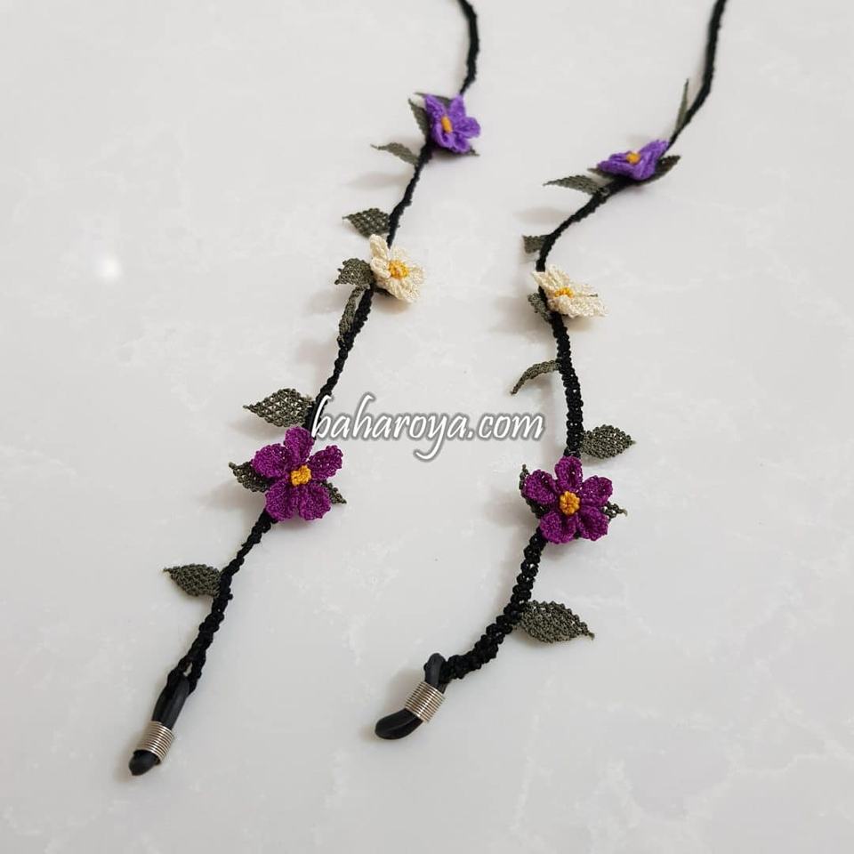 İğne Oyası Çiçek Gözlük İpi Mor-Lila Krem (Siyah Sap) Eyeglasses Parts