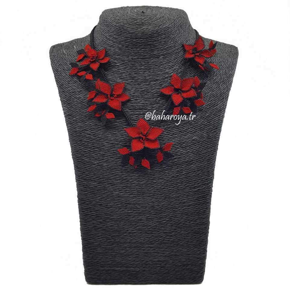 İğne oyasıaşk-ımemnu kolye krmızı- siyah renkli Moda İareşti halsiz