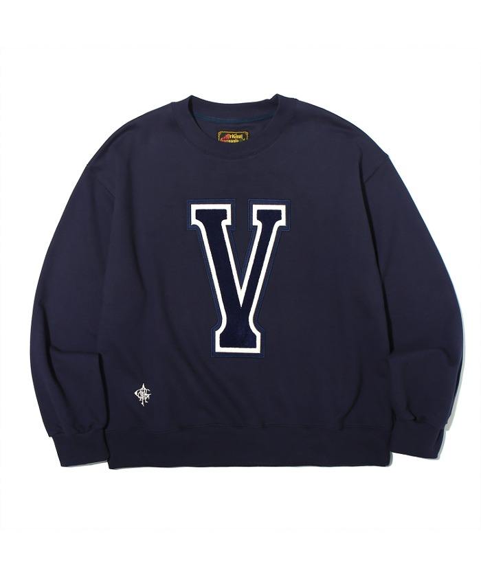 [โอการ์ป] [ผลิตภัณฑ์เกาหลี] เสื้อสเวตเชิ้ตสีกรมท่า ดีไซน์พิมพ์ลาย ผ้าทอ น้ำหนัก 430 กรัม ทรงปกติ คอตั้ง สไตล์วินเทจ สำหรับฤดูใบไม้ร่วง