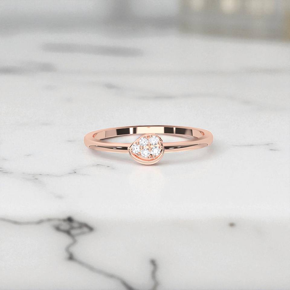 แหวนเพชรทรงกลม 0.04 กะรัต F-G/VS เพาะเลี้ยงในห้องปฏิบัติการ ประดับแบบหนามเตย ดีไซน์ดอกไม้ทันสมัย สำหรับทั้งชายและหญิง ผลิตจากทองคำแท้ 10K 14K 18K