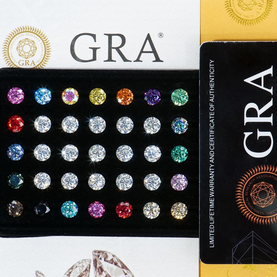 โมอิสซาไนต์ 0.1-6 กะรัต เพชรจำลอง ความใส VVS1 ทรงกลม พร้อมใบรับรอง GRA สำหรับทำเครื่องประดับ