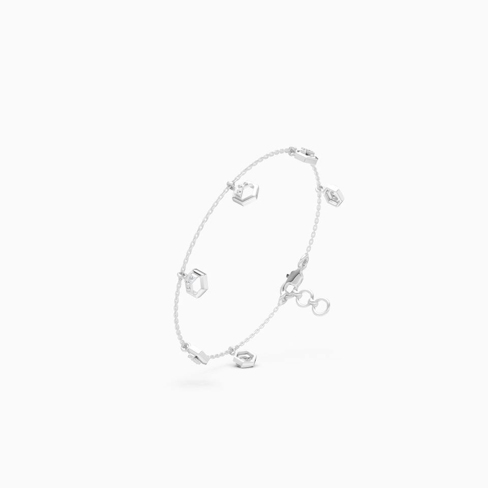 0.10 Ct Lab Grown Diamond Chain Style Bracelet With Hexagon Diamond Charms In 9K Yellow White And Rose Gold