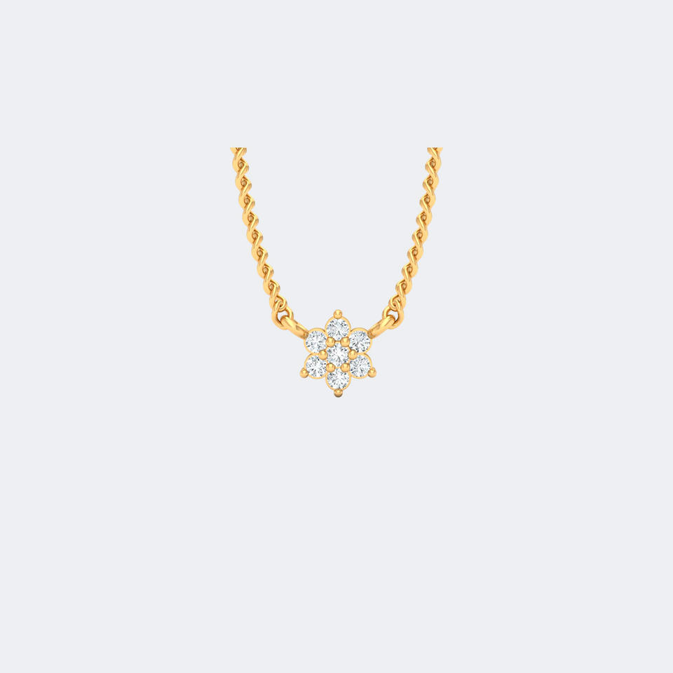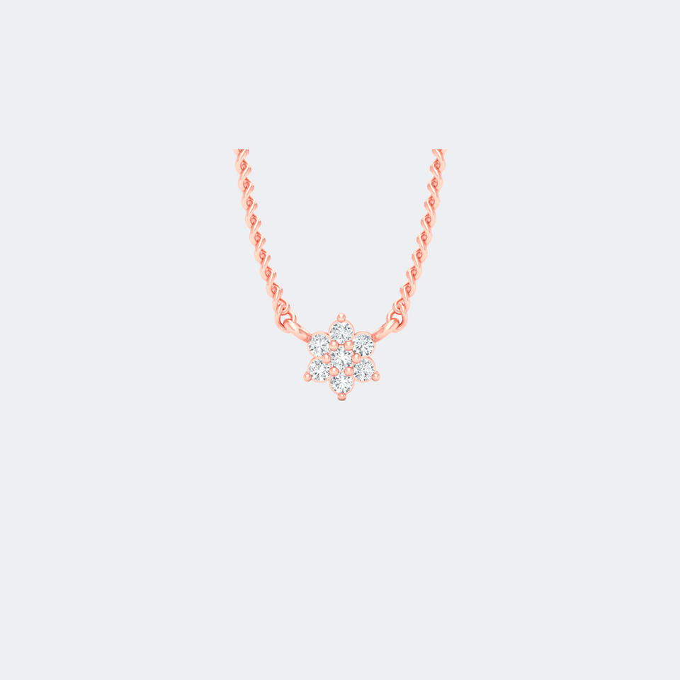 จี้เพชรทรงกลมเจียระไนแบบบริลเลียนท์ 0.10 กะรัต ฝังแบบหนามเตย รูปทรงดอกไม้ ทำจากทองคำแท้