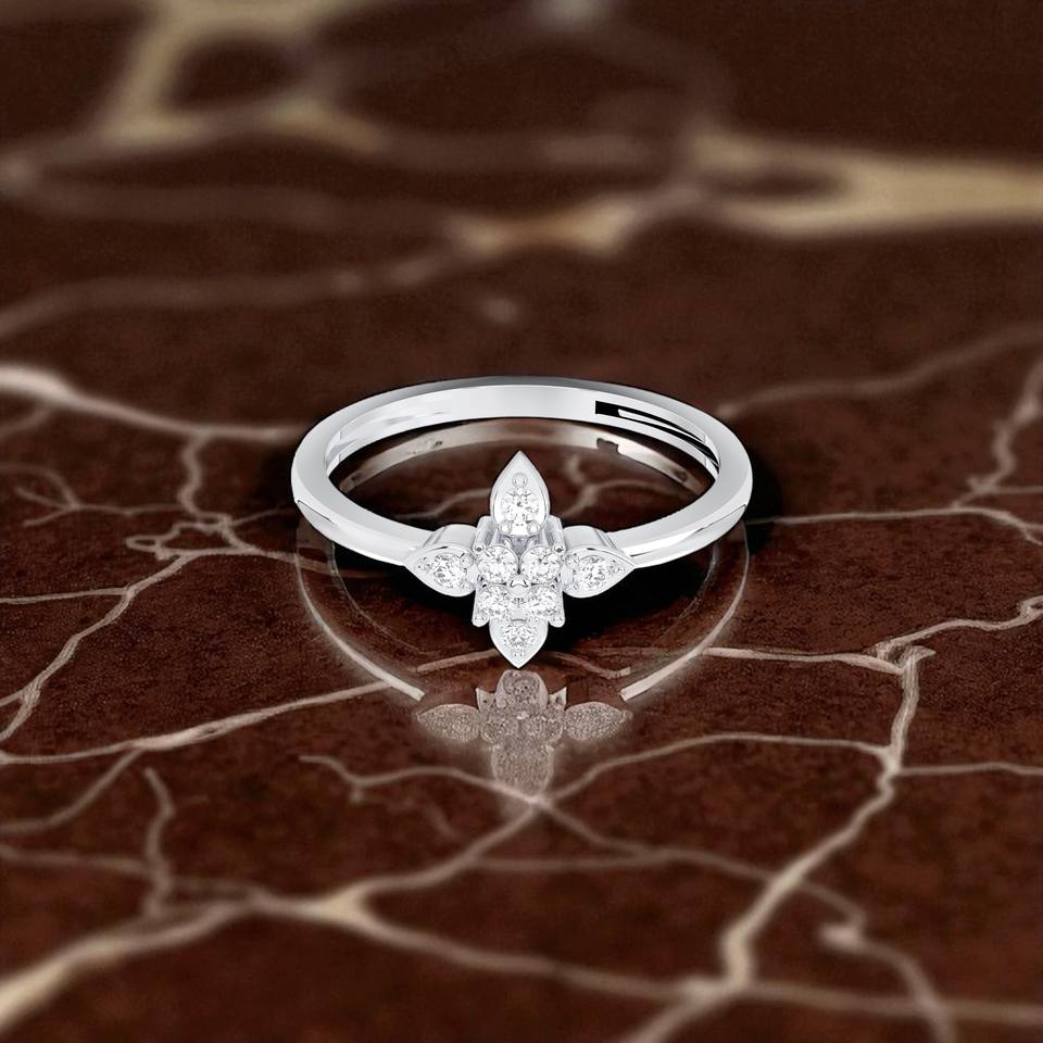 ชุดง่ามแหวนเพชรทรงกลมตัดลายดอกไม้สีเงิน0.11กะรัต E-F/VVS-VS