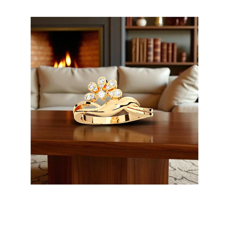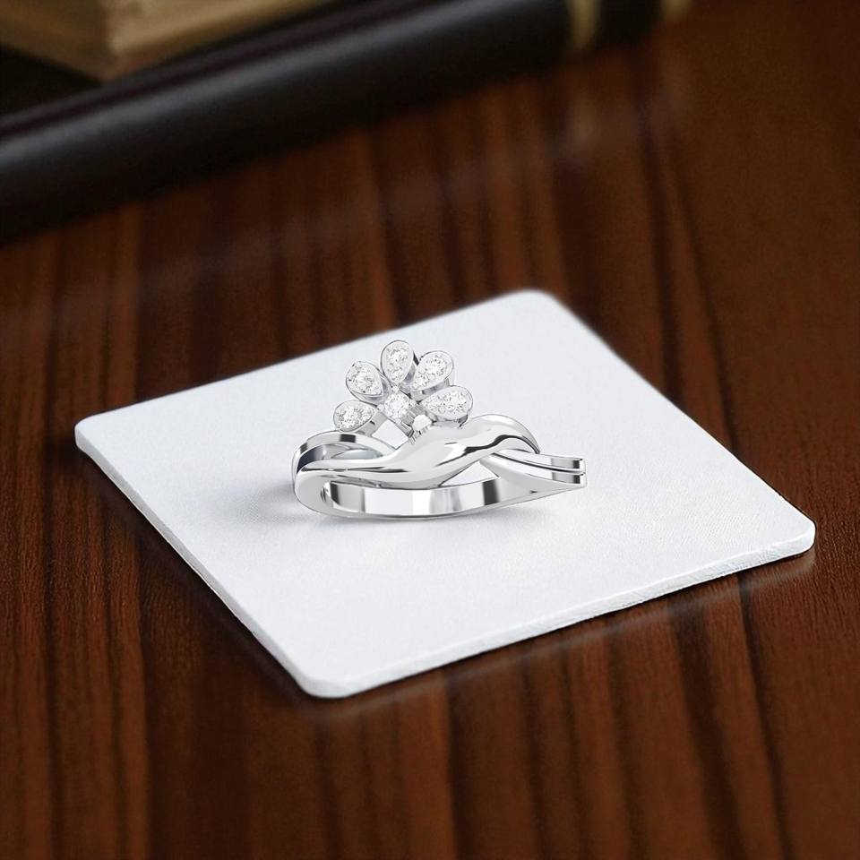 0.12 Carat E-F/VVS-VS Lab Grown Diamond Round Cut Prong Set Six Petal-Shaped Motifs Platinum Plated Unisex Ring