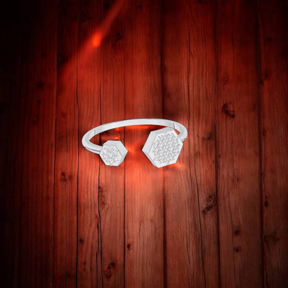 0.13 Carat E-F/VVS-VS Moissanite Round Cut 10K/14K/18K Solid Gold Glimmer Geo Ring with Diamond Pave Setting
