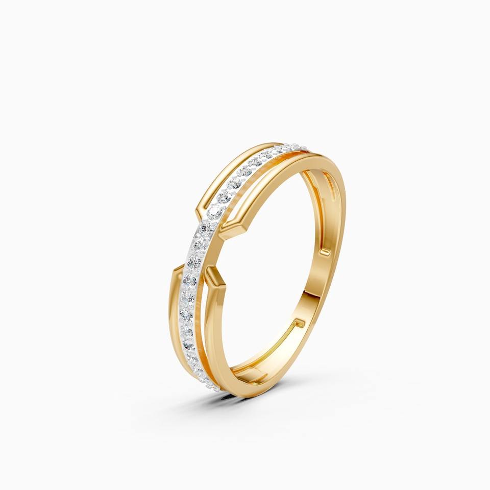 แหวนเพชรทรงเรขาคณิต 0.14 กะรัต เพชรเพาะเลี้ยงในห้องปฏิบัติการ ตัวเรือนทอง 9K สีเหลือง ขาว และโรสโกลด์