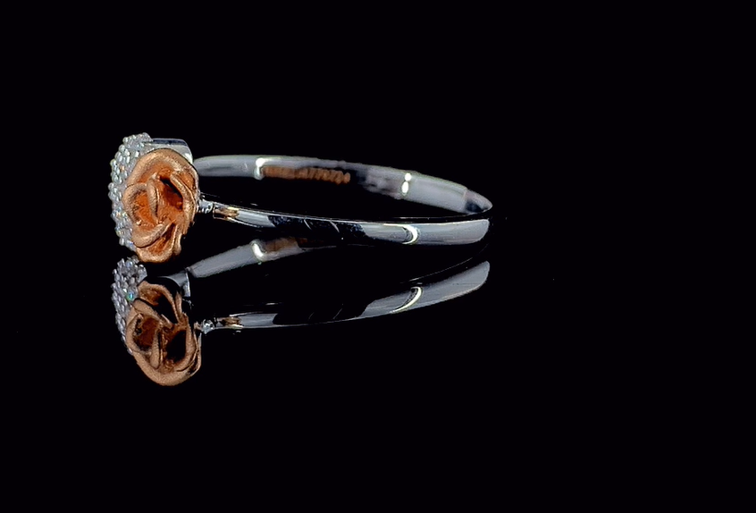 แหวนเพชรเลี้ยงในห้องปฏิบัติการ 0.15 กะรัต สองสี ดีไซน์โดดเด่น รับรองโดย SGL ทองคำแท้ 14K สีขาวและสีโรสโกลด์