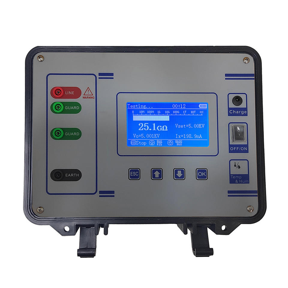 เครื่องวัดความต้านทานฉนวน 5KV พร้อมหน้าจอ LCD ขนาดใหญ่ 0.1M~10T เมกะโอห์มมิเตอร์