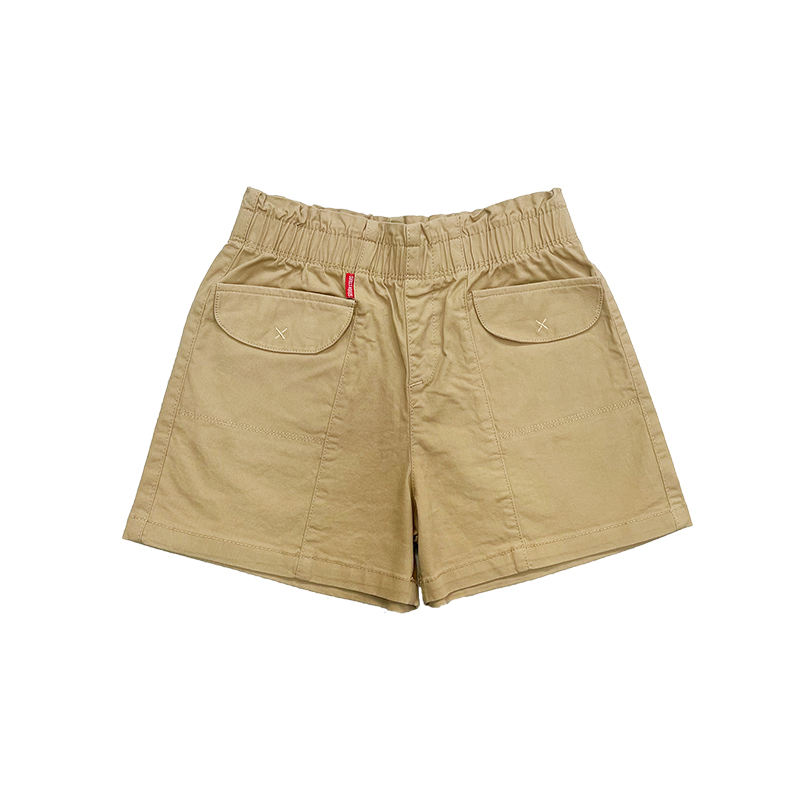 คำอธิบาย:เด็กด้านล่าง, สาว, สั้น, เอวยางยืด, สีกากี,