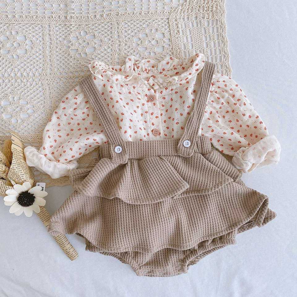 ชุดกระโปรงเด็กอ่อนแบบมีสายรัดลายใบบัว สำหรับเด็กอายุ 0-2 ปี รุ่นฤดูใบไม้ผลิและฤดูใบไม้ร่วง ปี 2025 ผลิตจากผ้าฝ้าย 100% เป็นมิตรต่อสิ่งแวดล้อม น่ารักหวานแหวว
