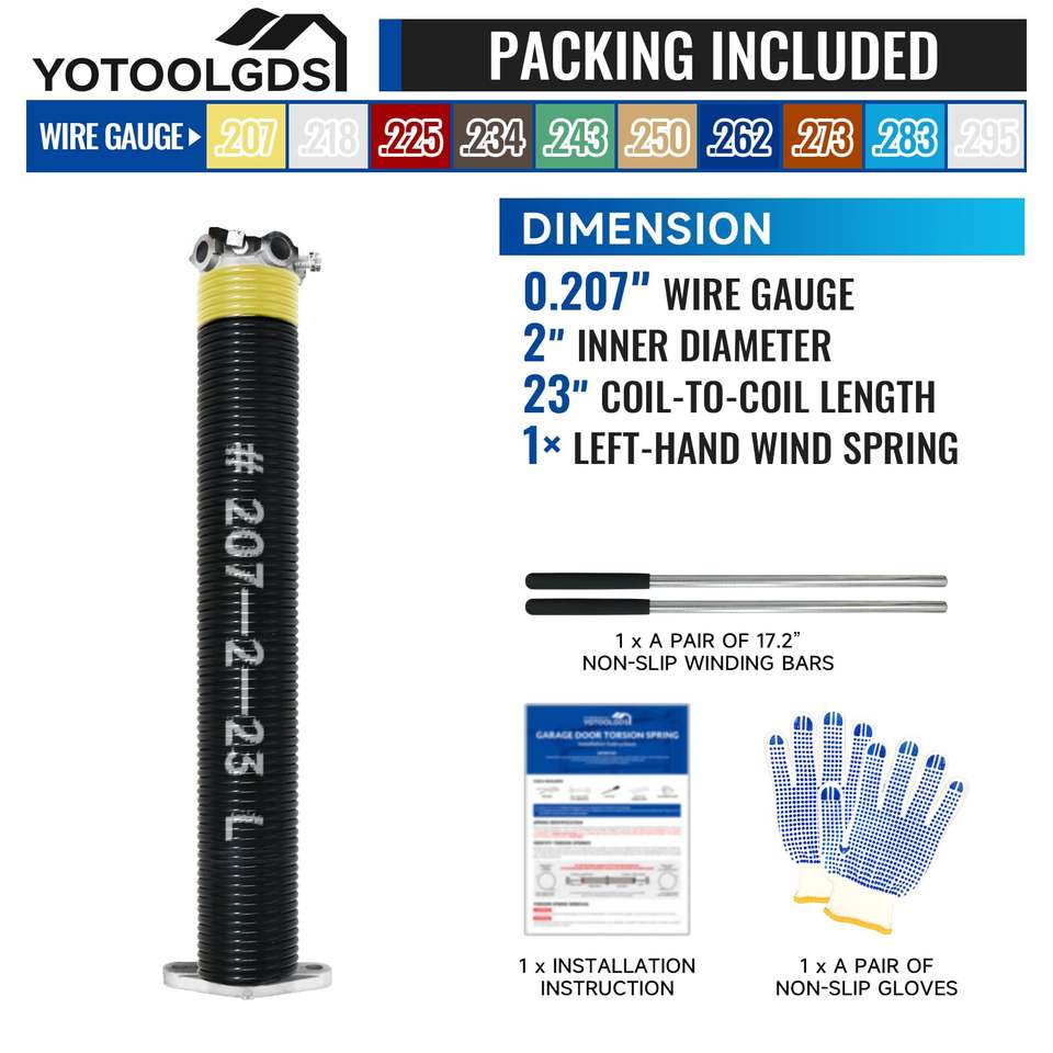 0.207X2 "X23"-L สปริงแรงบิดประตูโรงรถลมซ้ายความแม่นยำสูง (กรวยสีดำ) พร้อมบาร์และถุงมือกันลื่น