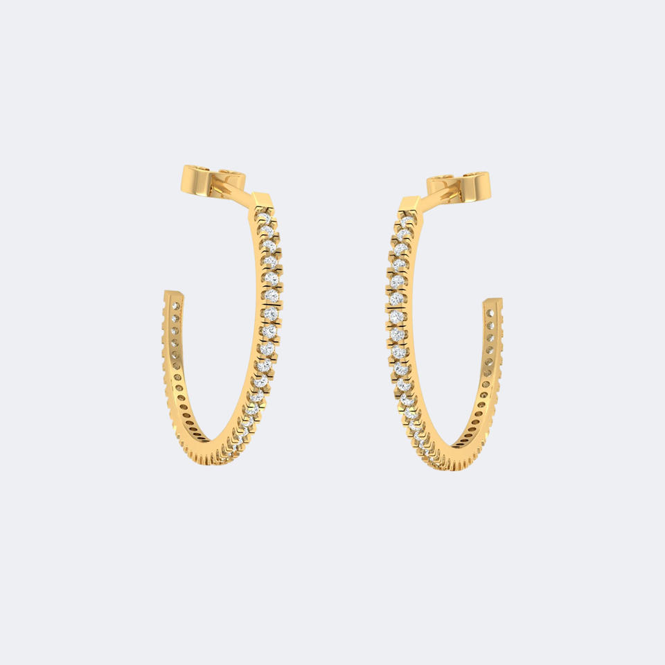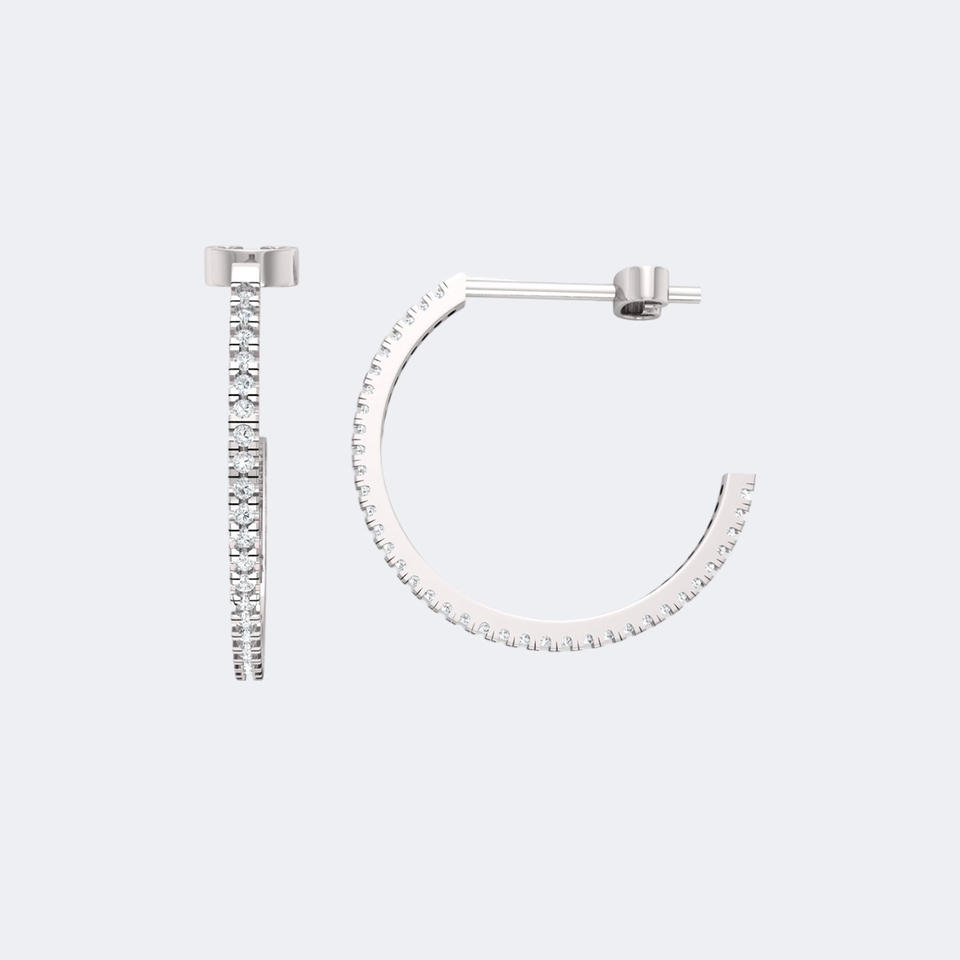 ต่างหูเพชรทรงกลม 0.20 กะรัต แบบห่วงเปิด ประดับเพชรแบบฝังเต็มตัว ตัวเรือนทองคำแท้ รูปทรงตัว C ขนาดเล็ก เรียบหรู ดูดี เป็นของขวัญสำหรับผู้หญิง