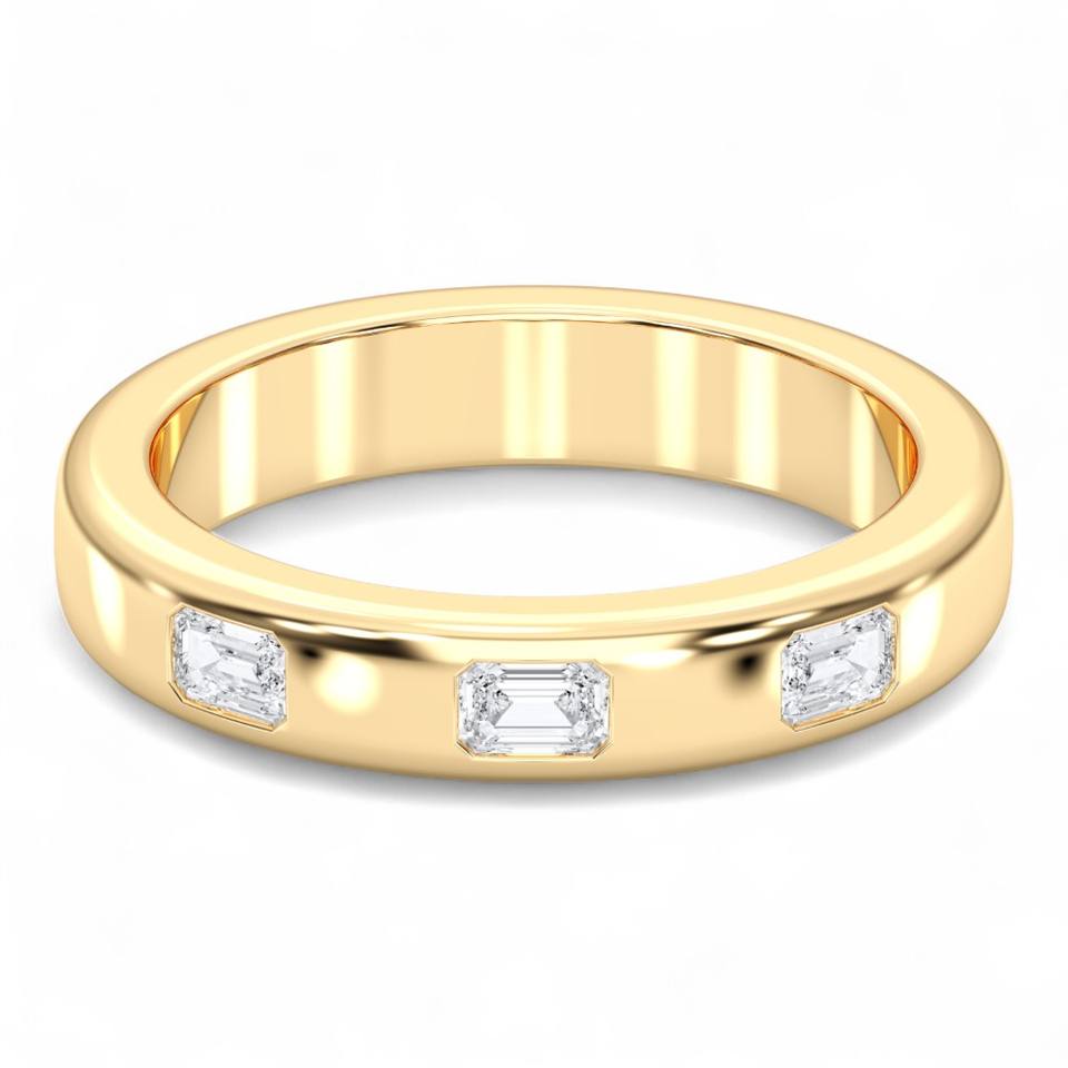 แหวนแต่งงานทันสมัยประดับเพชรทรงเหลี่ยมมรกต 0.24 กะรัต F-G/VS เพชรเลี้ยงในห้องปฏิบัติการ ทองคำแท้สำหรับผู้หญิง