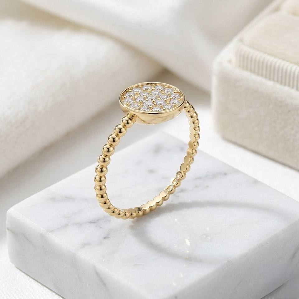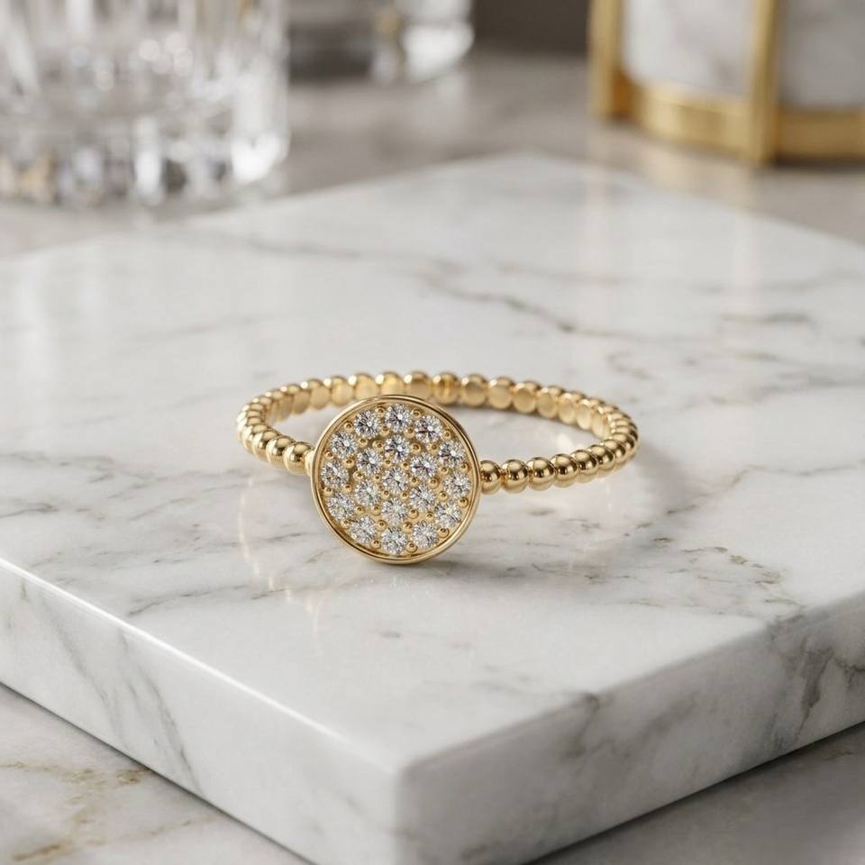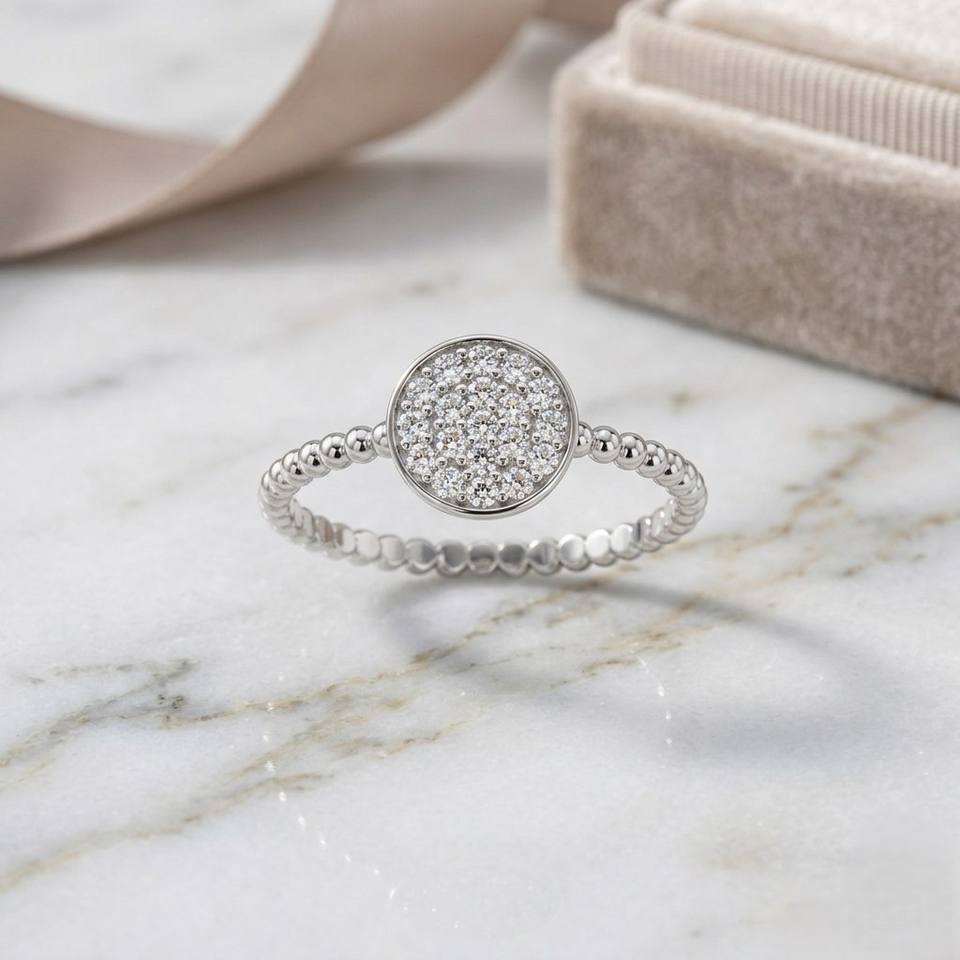 แหวนเพชรเม็ดกลม 0.25 กะรัต ทอง 10k ประดับเพชรแบบคลัสเตอร์และลูกปัด ฝังแบบ Pave ไดมอนด์เพาะเลี้ยงในห้องปฏิบัติการ รับรองโดย IGI แหวนหรูหรา