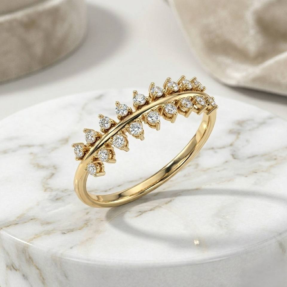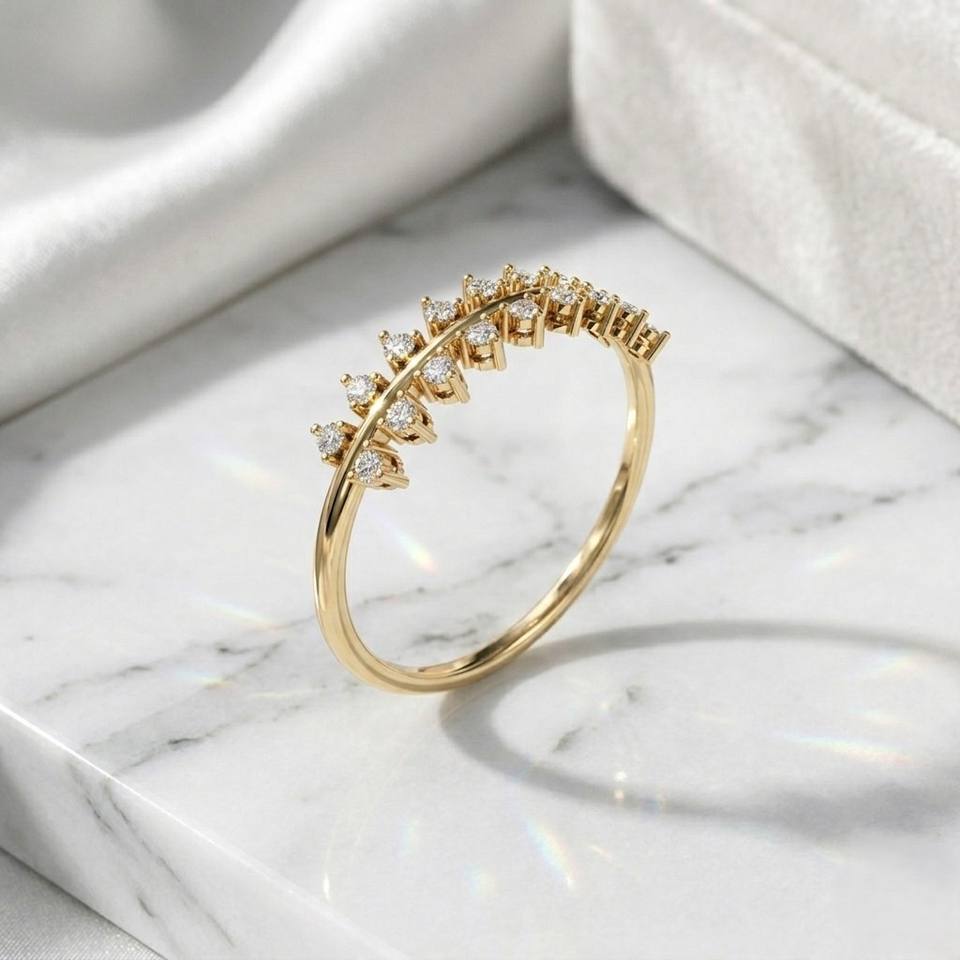 แหวนเพชรทรงกลมเจียระไนแบบบริลเลียนท์ น้ำหนัก 0.25 กะรัต ผลิตในห้องปฏิบัติการ ตัวเรือนทอง 9k ประดับแบบกลุ่มใบไม้ ดีไซน์หรูหราเรียบง่าย พร้อมใบรับรอง