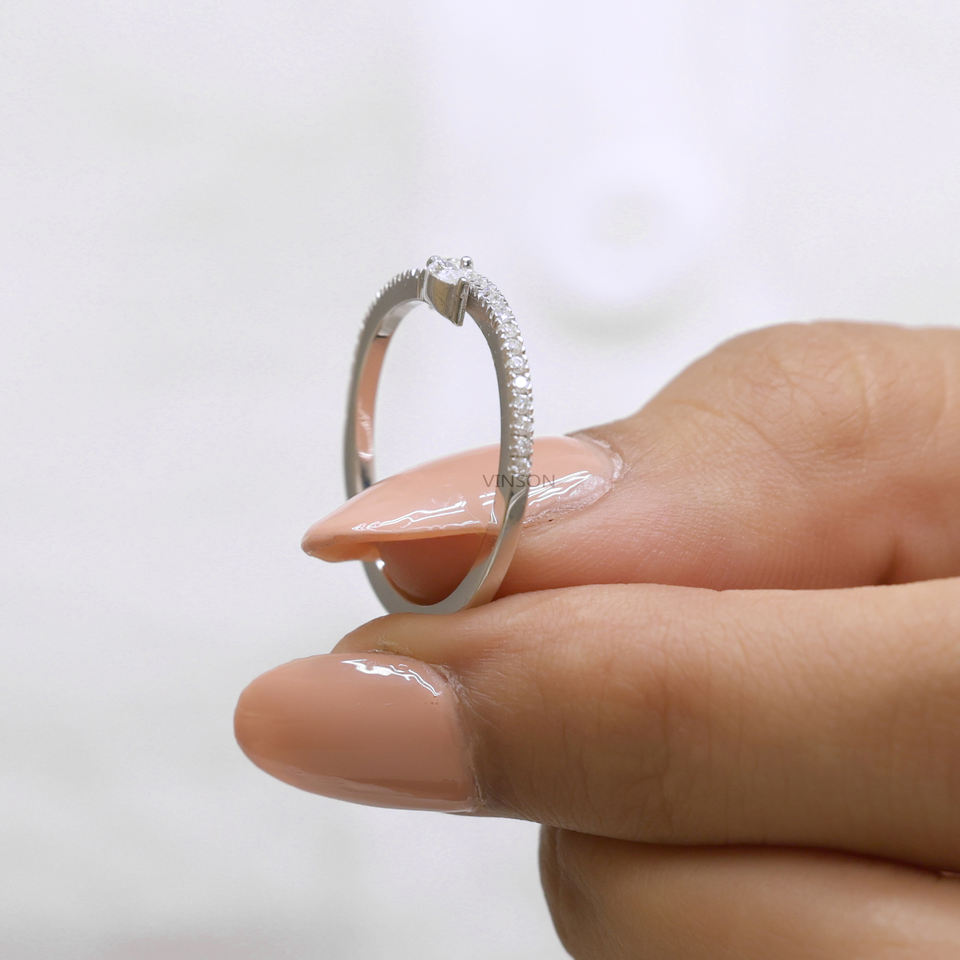 แหวนแต่งงานเพชรทรงกลมเจียระไนแบบบริลเลียนท์ น้ำหนัก 0.264 กะรัต ผลิตในห้องปฏิบัติการ ชุบทองคำขาว 18K พร้อมใบรับรอง GRA