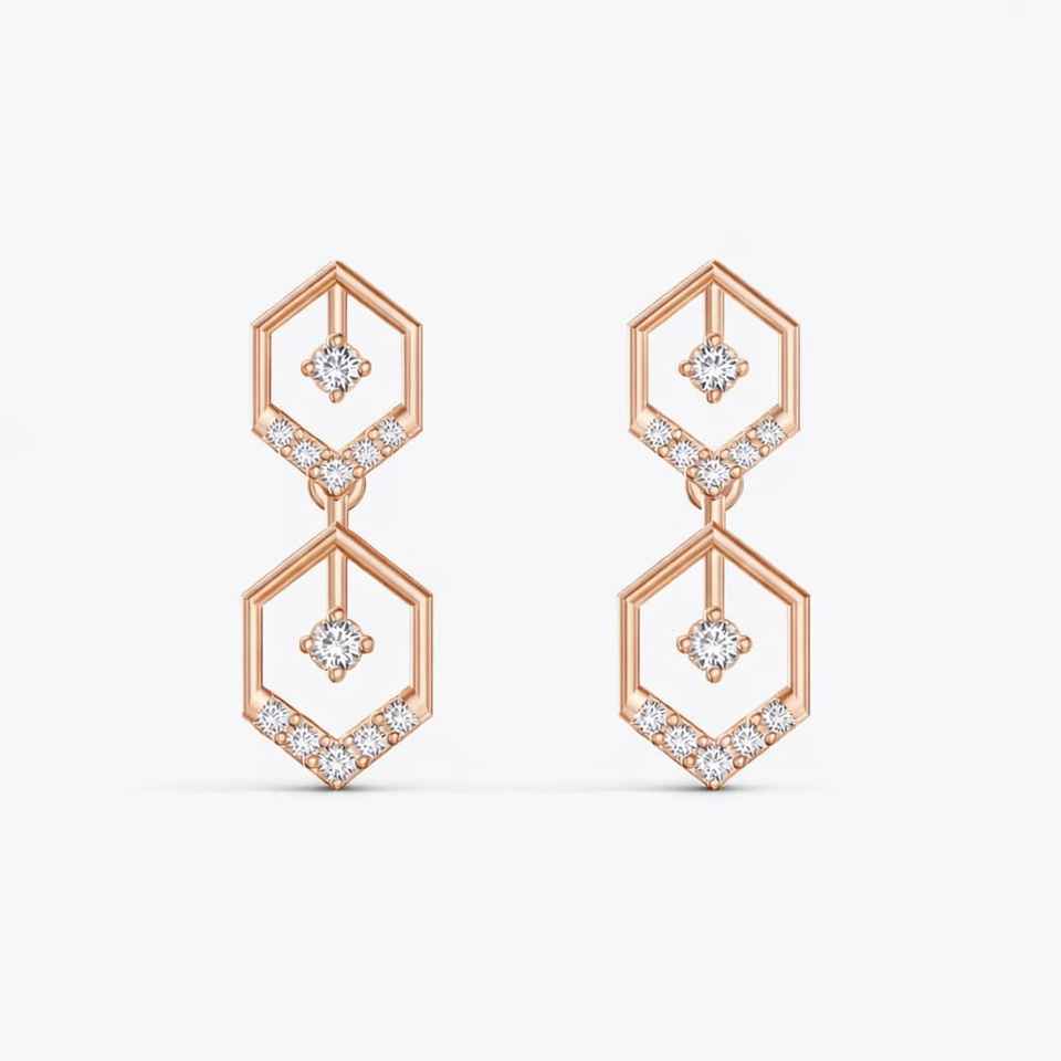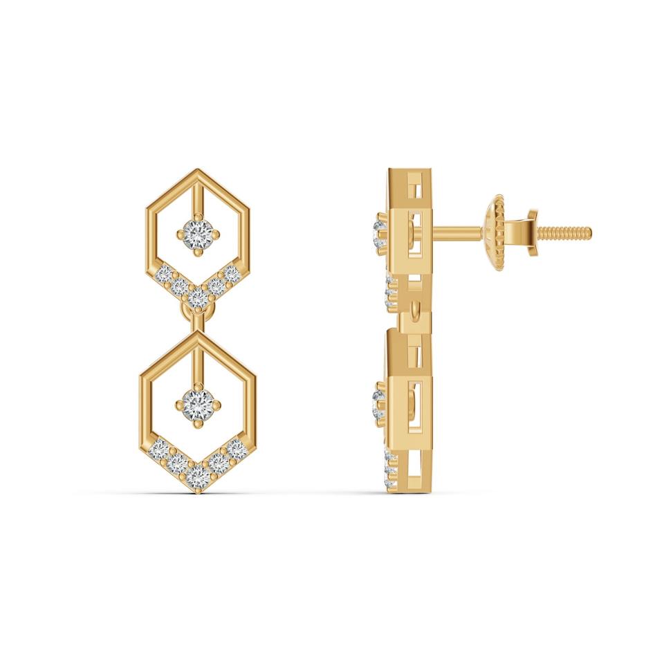 ต่างหูเพชรทรงกลม 0.287 กะรัต รูปทรงหกเหลี่ยมคู่ ตัวเรือนทองคำขาว 14K พร้อมตัวล็อคแบบเกลียว