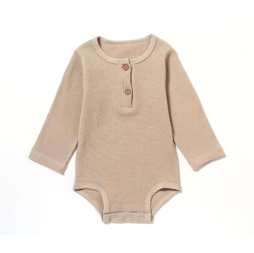 ชุดเด็กอ่อน 0-3 เดือน ผ้าวาฟเฟิล ชุดรอมเปอร์เด็กแรกเกิด ถักลายรุ้ง แขนยาว เสื้อผ้าเด็ก