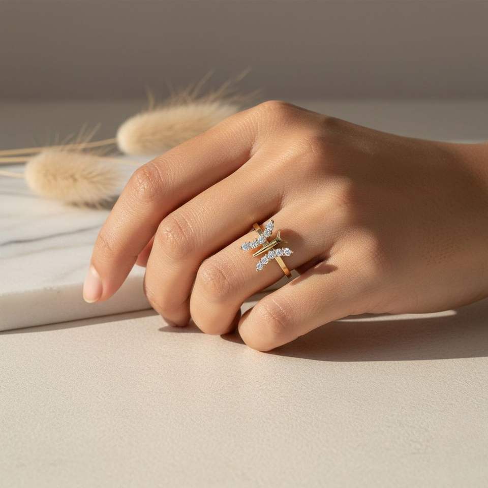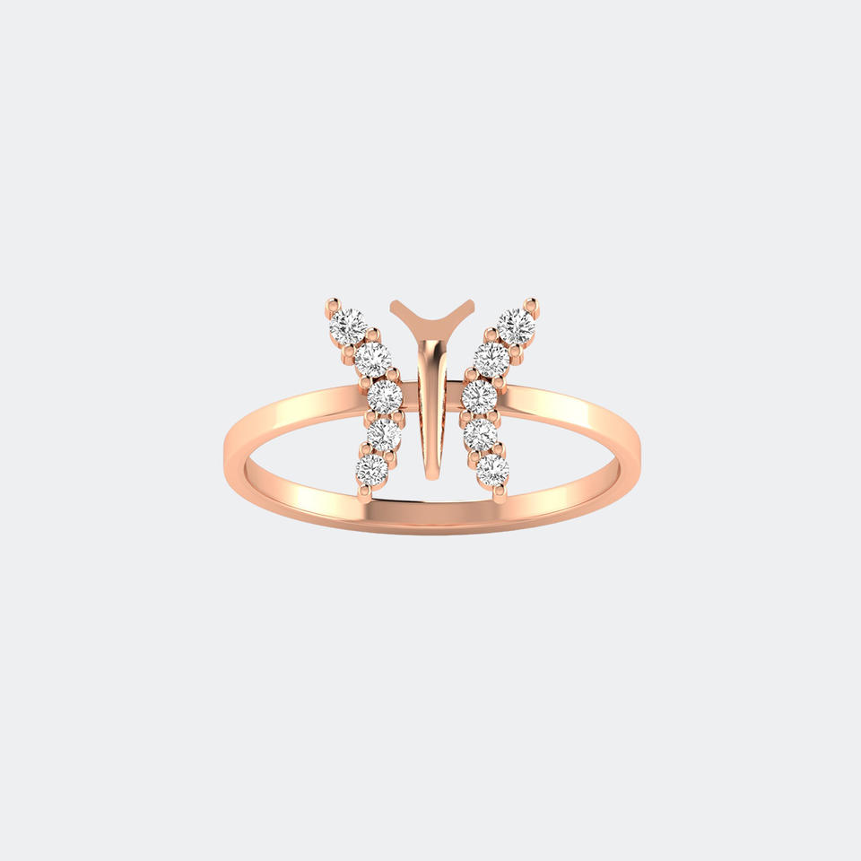 แหวนมินิมอลทรงกลมประดับเพชรแบบคลัสเตอร์รูปผีเสื้อ 0.30 กะรัต