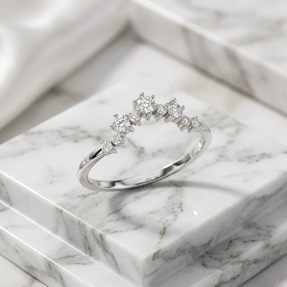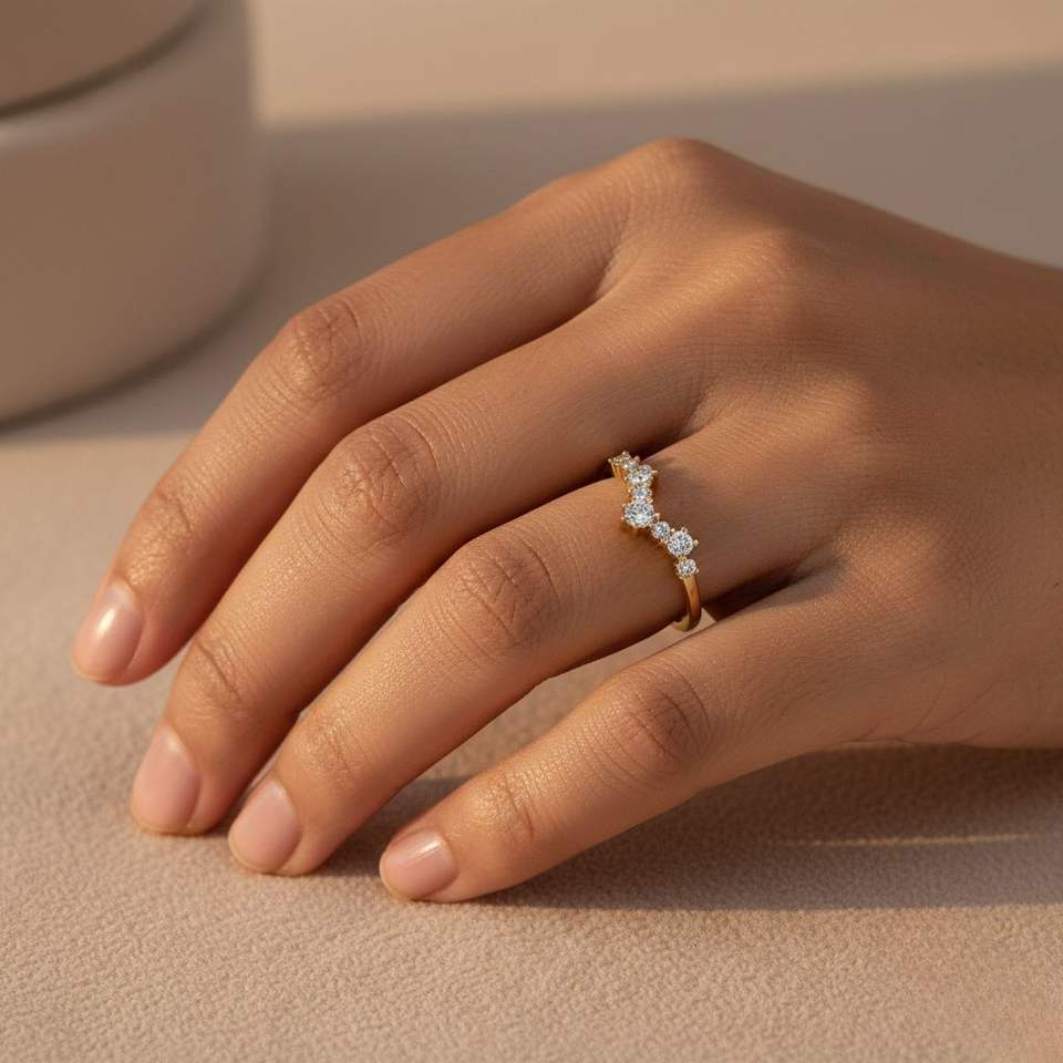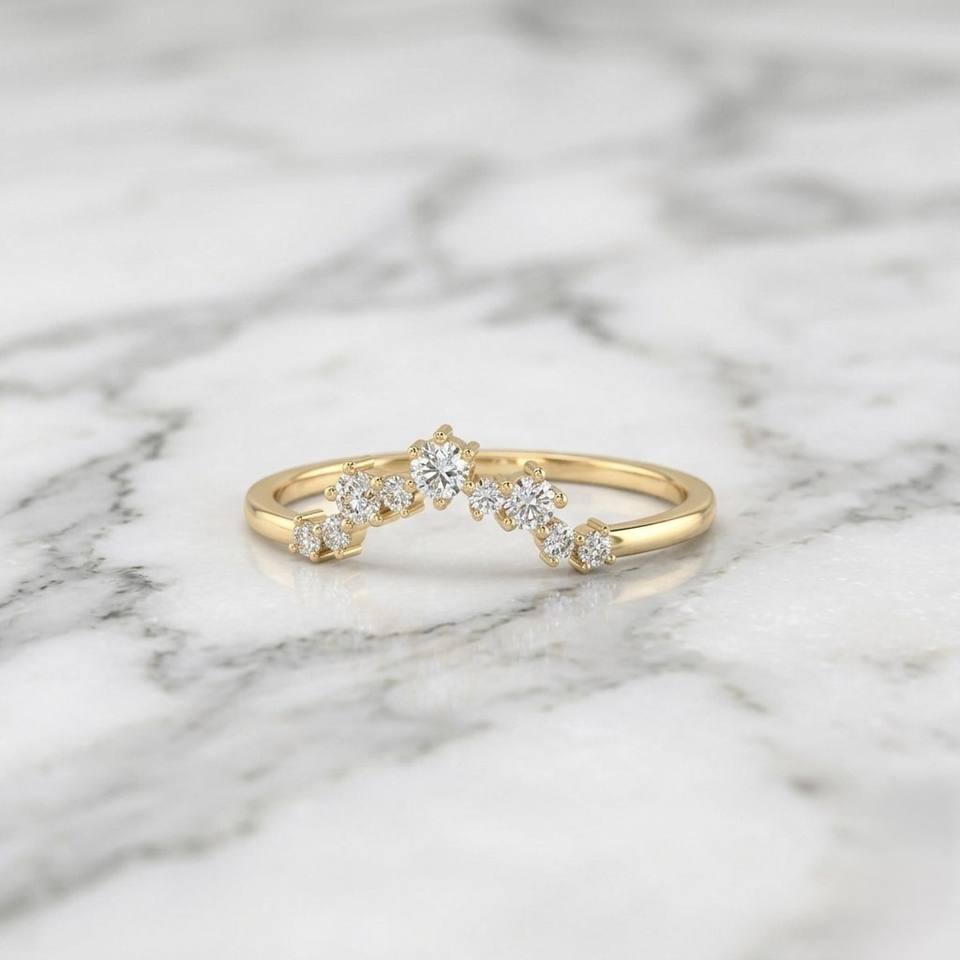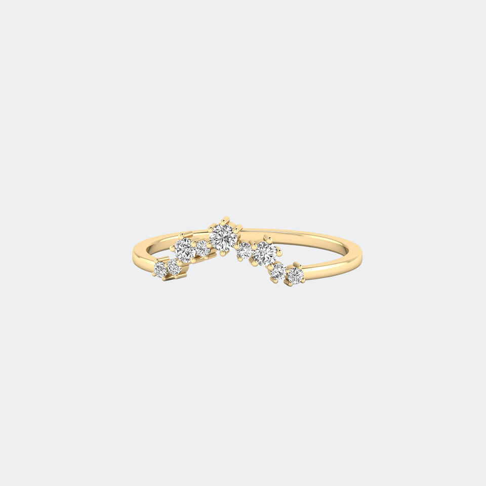 0.30CTW 9K Gold Plated Round Brilliant Cut Lab Grown Diamond V-Shaped Cluster Setting Luxury Minimalist Women's Ring