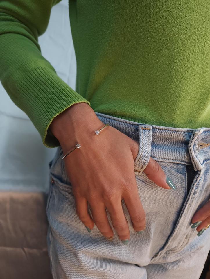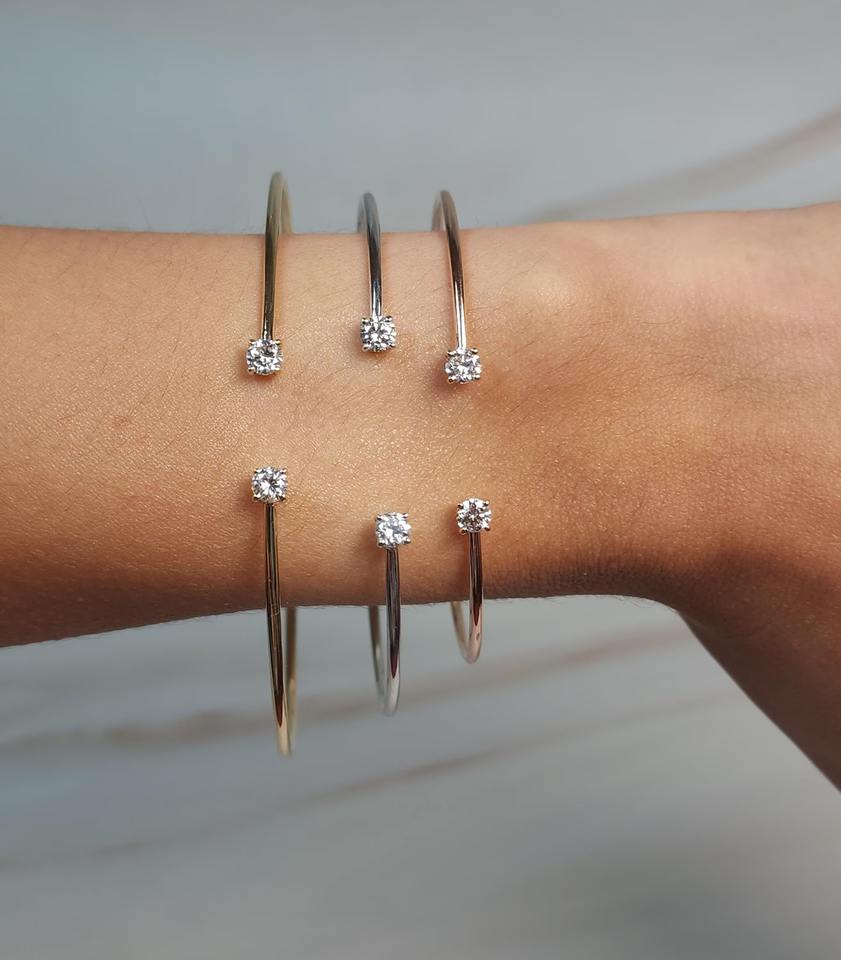 กำไลข้อมือเพชรเพาะเลี้ยงในห้องปฏิบัติการ 0.40 กะรัต แบบเปิด ปรับขนาดได้ ทองคำสีเหลือง 14K 18K รับรองโดย IGI ความใส VS เครื่องประดับชั้นดี
