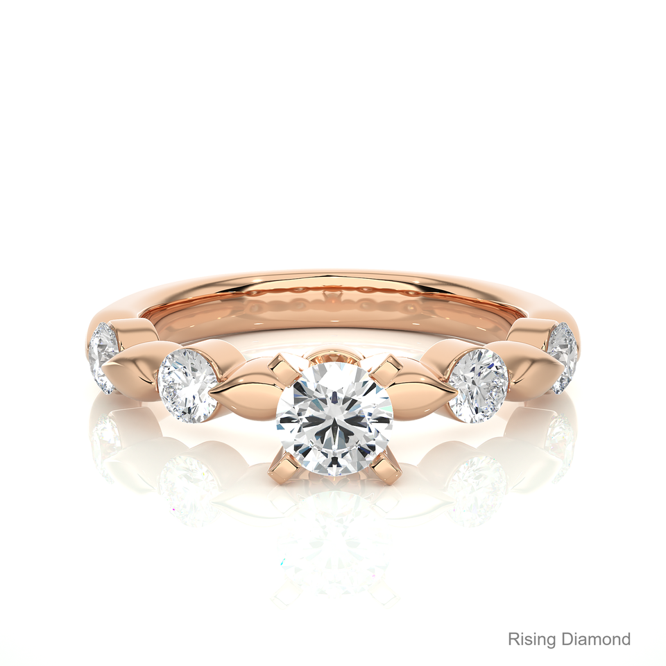 แหวนเพชร CVD สำหรับผู้หญิงแหวนหมั้นสำหรับปลูกในห้องปฏิบัติการทรงกลม0.41 CT สีเหลืองทอง CVD