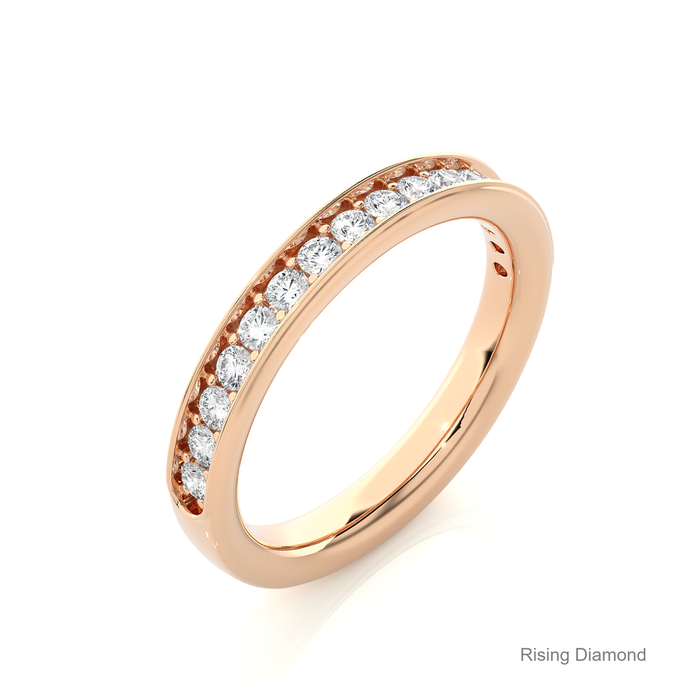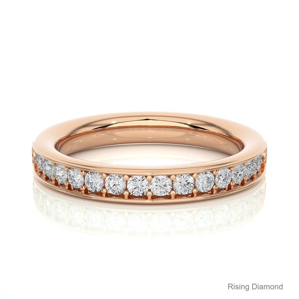 0.42 CTW ชุดปูเพชรทรงกลมสำหรับปูเป็นเม็ดกลมสีโรสโกลด์แหวนแต่งงานครบรอบของขวัญ