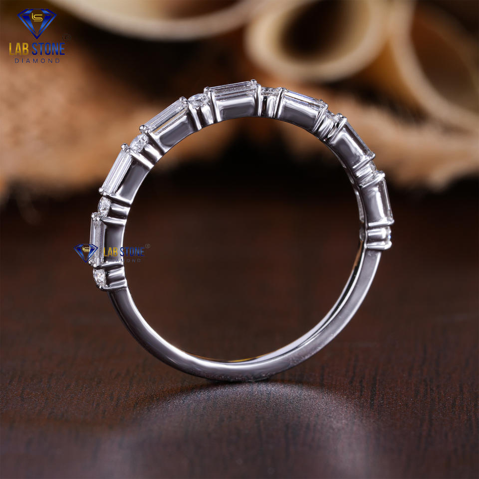 0.44 TDW บาแกตต์&แหวนเพชรตัดกลม ทองคําขาว โดย Lab-Stone / แหวนจับลม / สี EF-VS