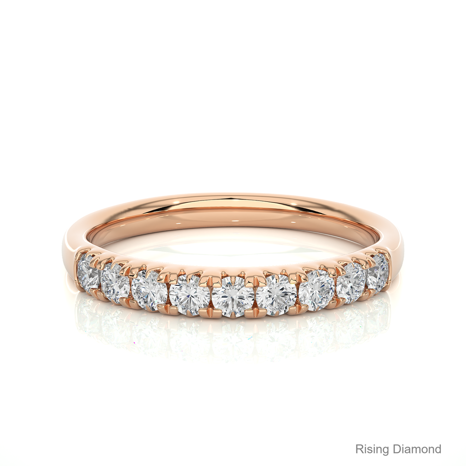 0.47 CTW รอบแล็บตัดชุดปูเพชรครึ่งนิรันดร์ในโรสโกลด์ CVD แต่งงานวงและครบรอบของขวัญแหวน