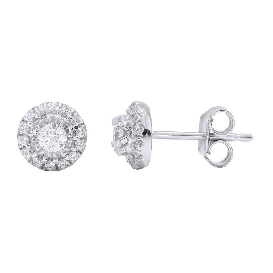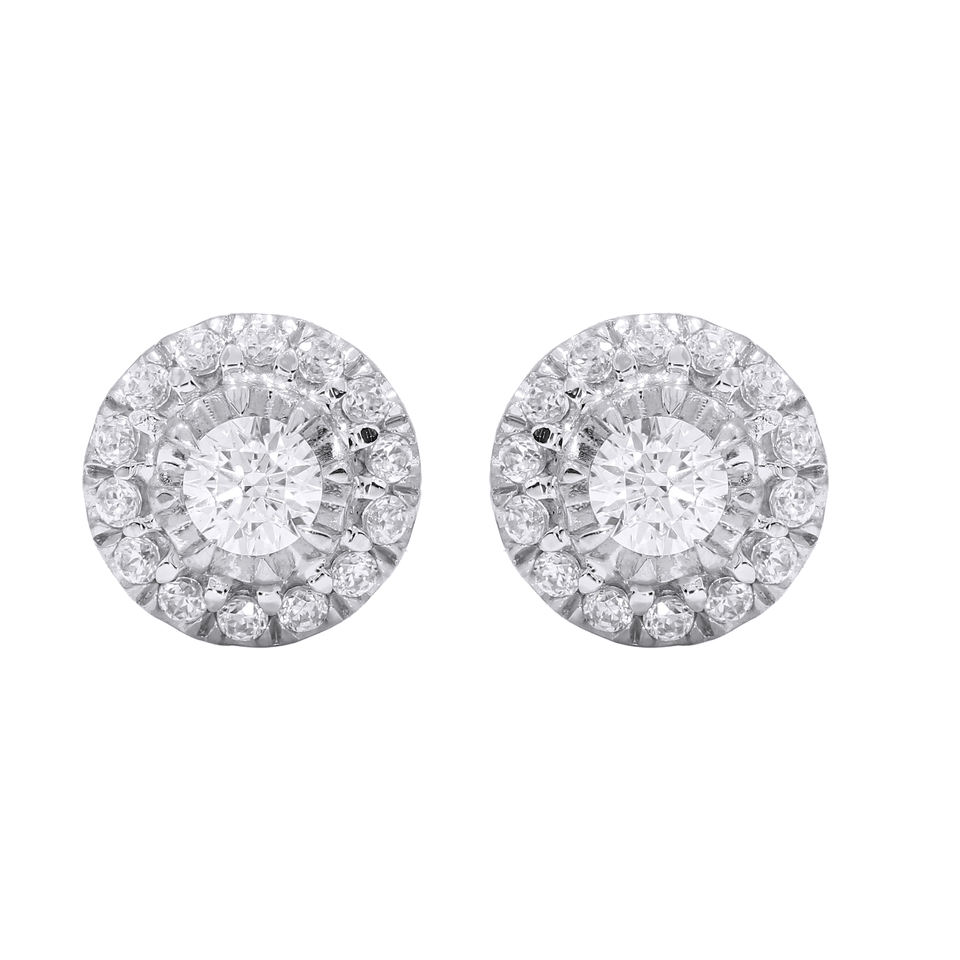 ต่างหูเพชรซิคอนทรงกลม 0.49 กะรัต เจียระไนแบบ F-G/VS เพชรเพาะเลี้ยงในห้องปฏิบัติการ ชุบทองคำขาว 10K 14K 18K หรูหราสำหรับงานแต่งงาน งานเลี้ยงฉลองครบรอบ