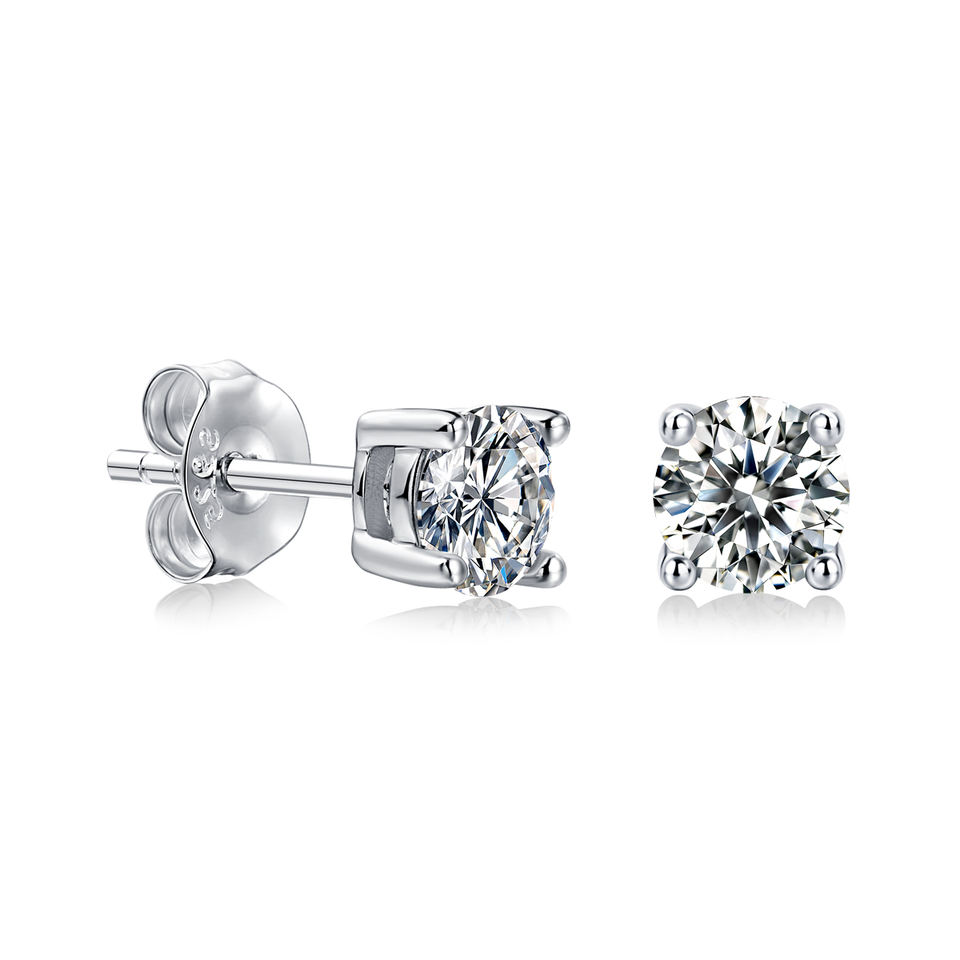 ต่างหูแบบหนีบหู 0.5 กะรัต ทรงสี่ขา ประดับพลอยโกเมนสี D เงินคาร์บอนซิลิคอน ชุบโรเดียม ได้รับการรับรองจาก GRA