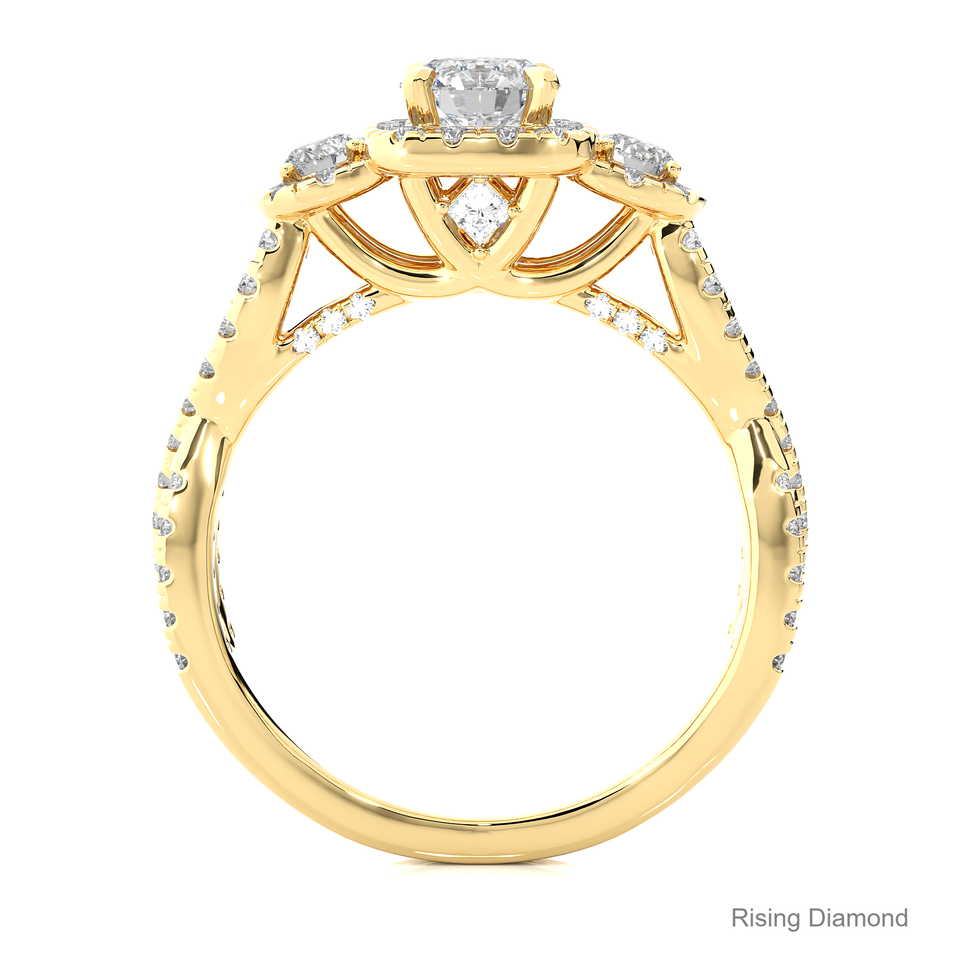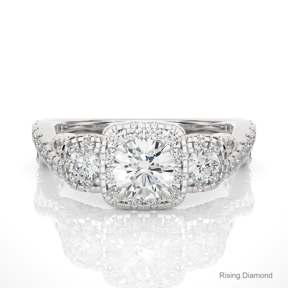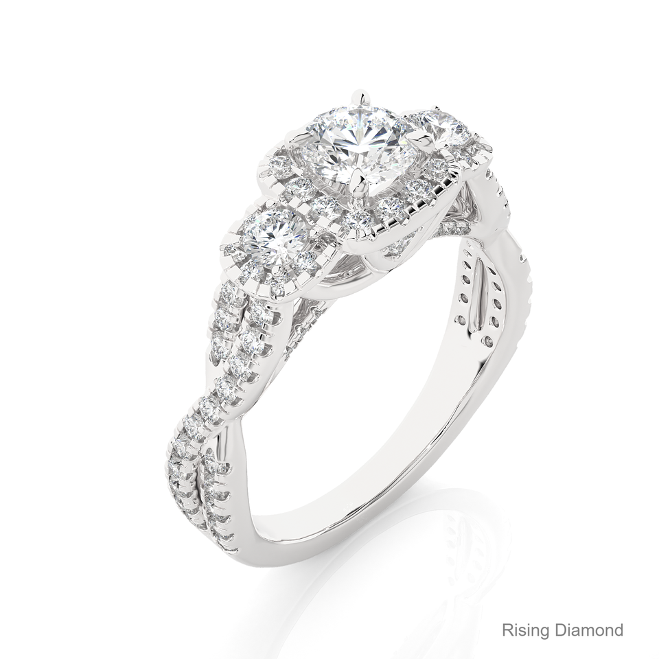แหวนหมั้นเพชรสำหรับปลูกในห้องปฏิบัติการทรงกลม0.5กะรัตสามหินสีขาวทองแหวนเพชร CVD ของขวัญครบรอบสำหรับเธอ