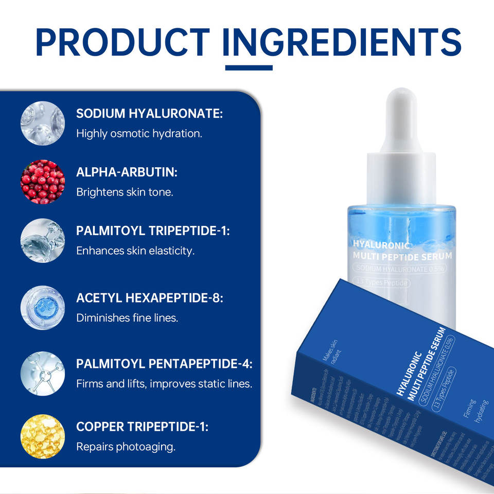 เซรั่มโซเดียมไฮยาลูโรเนต 0.5% + เปปไทด์ 13 ชนิด ช่วยเติมความชุ่มชื้นอย่างล้ำลึก กระชับผิว ลดเลือนริ้วรอย ช่วยเพิ่มคอลลาเจน ซ่อมแซมผิว