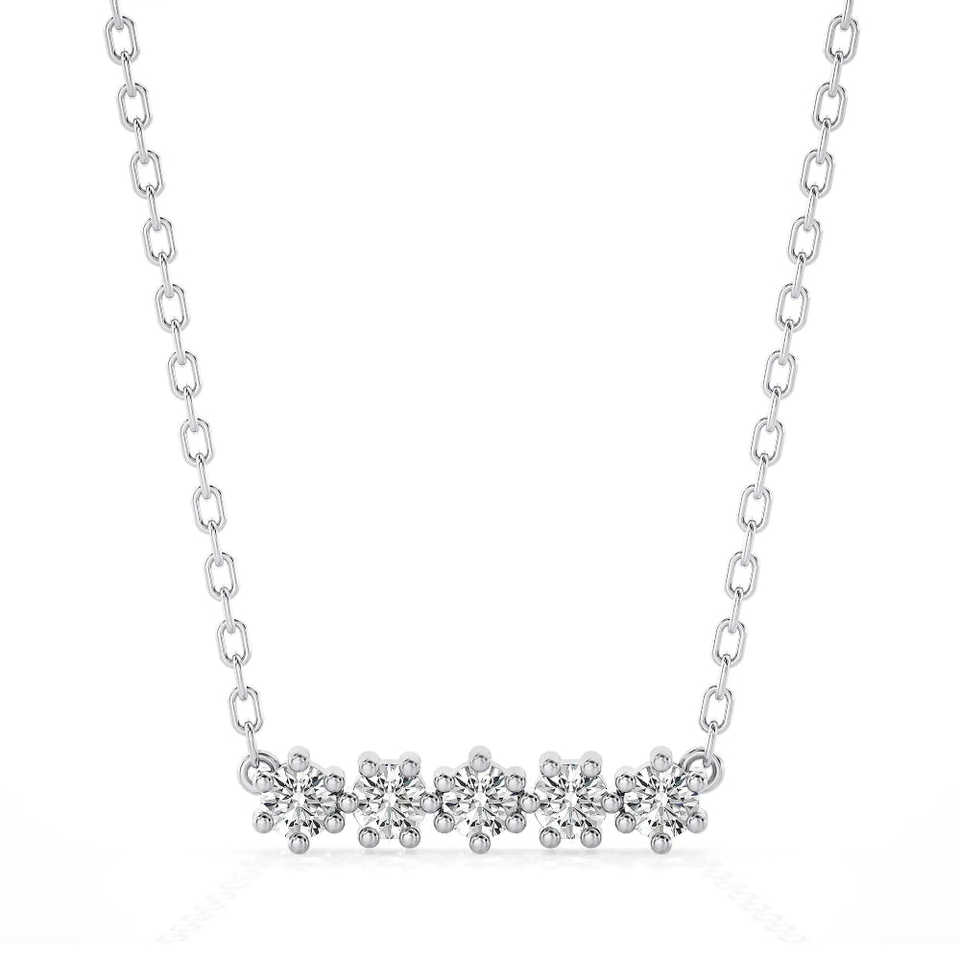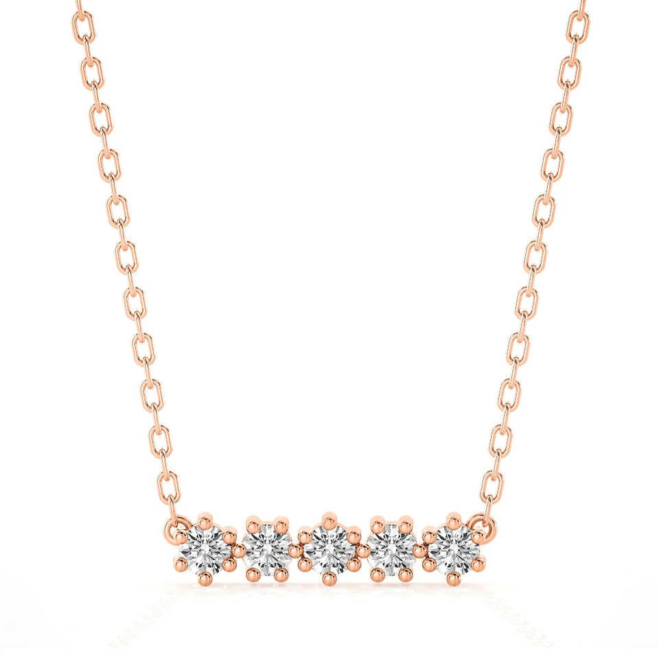 สร้อยคอเพชรทรงแท่งเจียระไนบริลเลียนต์ 5 เม็ด น้ำหนักรวม 0.50 กะรัต ได้รับการรับรองจาก IGI เพชรเพาะเลี้ยงในห้องปฏิบัติการ ชุบโรเดียม ทองคำขาว 10K สีโรสโกลด์ หรูหราสำหรับผู้หญิง ใส่ไปงานปาร์ตี้