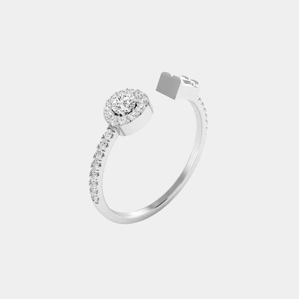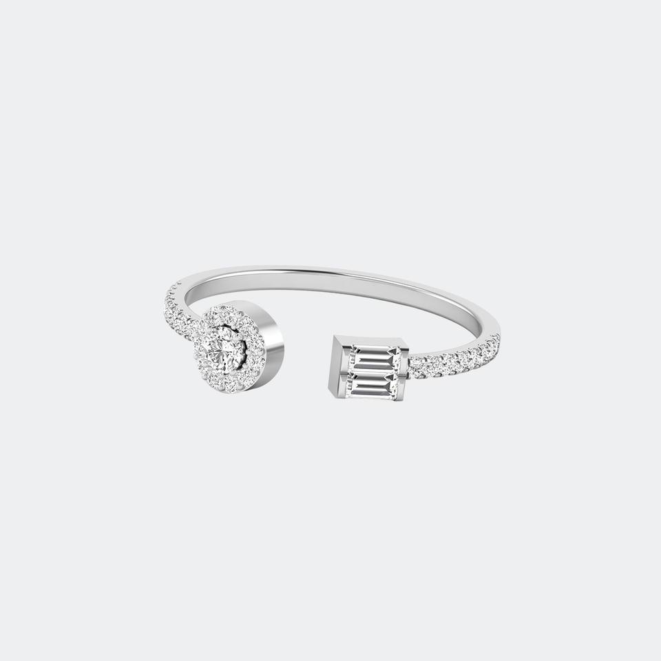 แหวนทองคำทรงเปิดแบบบายพาสประดับเพชรทรงบาแกตต์และทรงกลม น้ำหนักรวม 0.50 กะรัต พร้อมด้วยเพชรแล็บโกรว์รูปทรงผสม ปรับขนาดได้