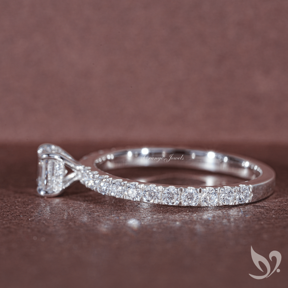 แหวนประดับเพชรทรงแอสเชอร์ 0.50 กะรัต ได้รับการรับรองจาก IGI เพชรเพาะเลี้ยงในห้องปฏิบัติการ | แหวนทองคำแท้ 10K แบบวงแหวนซ่อน