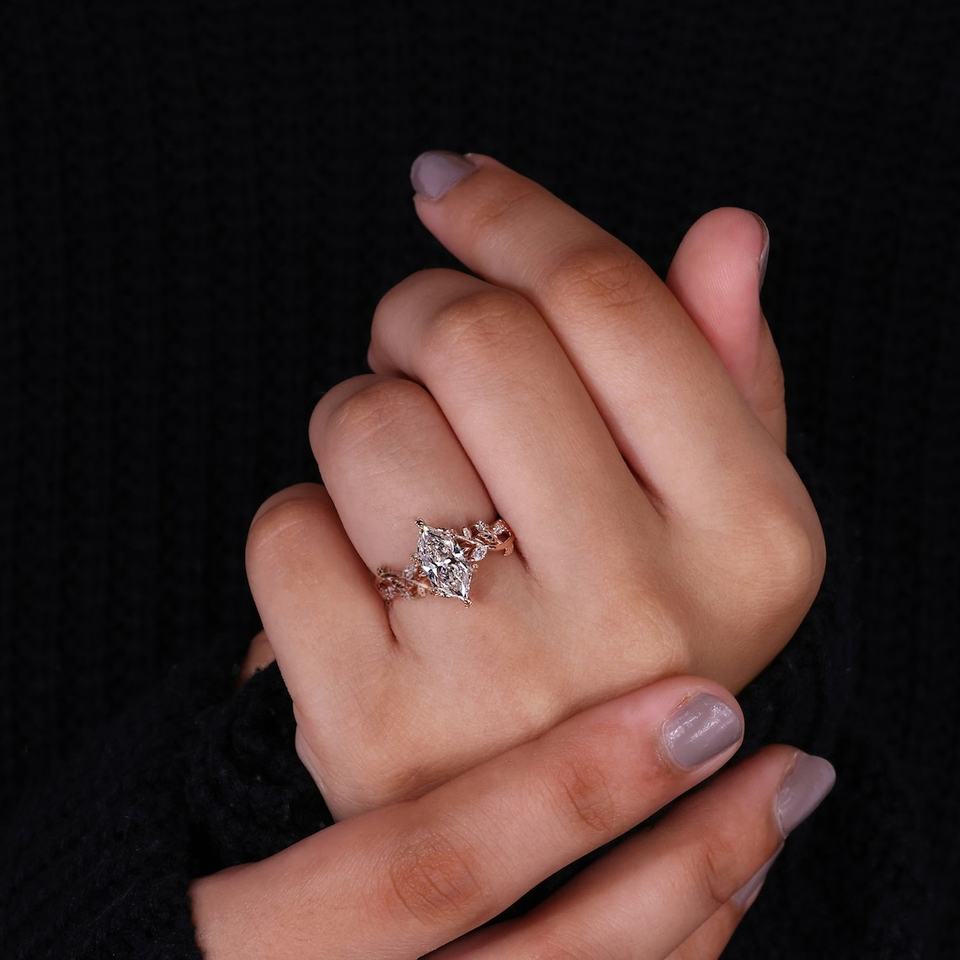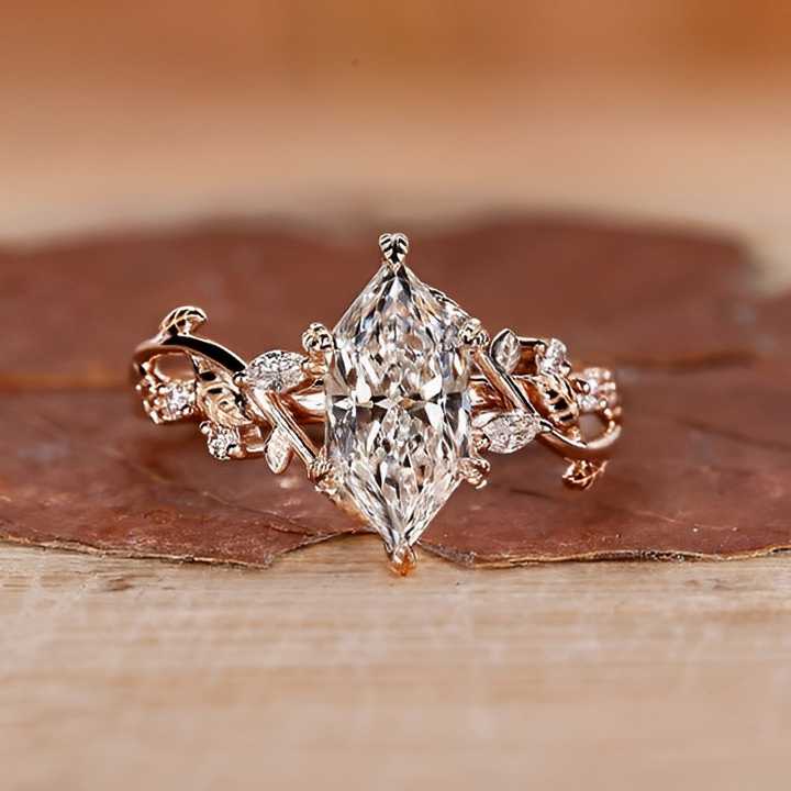 0.5CT-3CT VVS CZ ประดับด้วยเพชรสเตอริงสีโรสโกลด์แหวนหมั้นโบราณสำหรับผู้หญิงแหวนครบรอบแต่งงานดัตช์ตัดใบ
