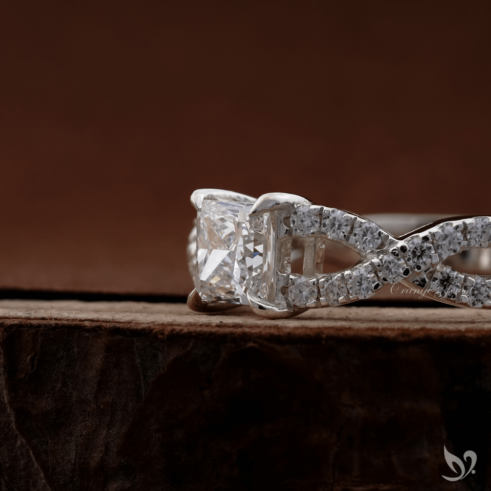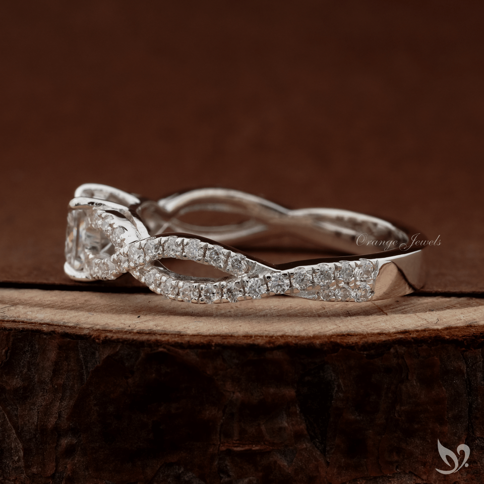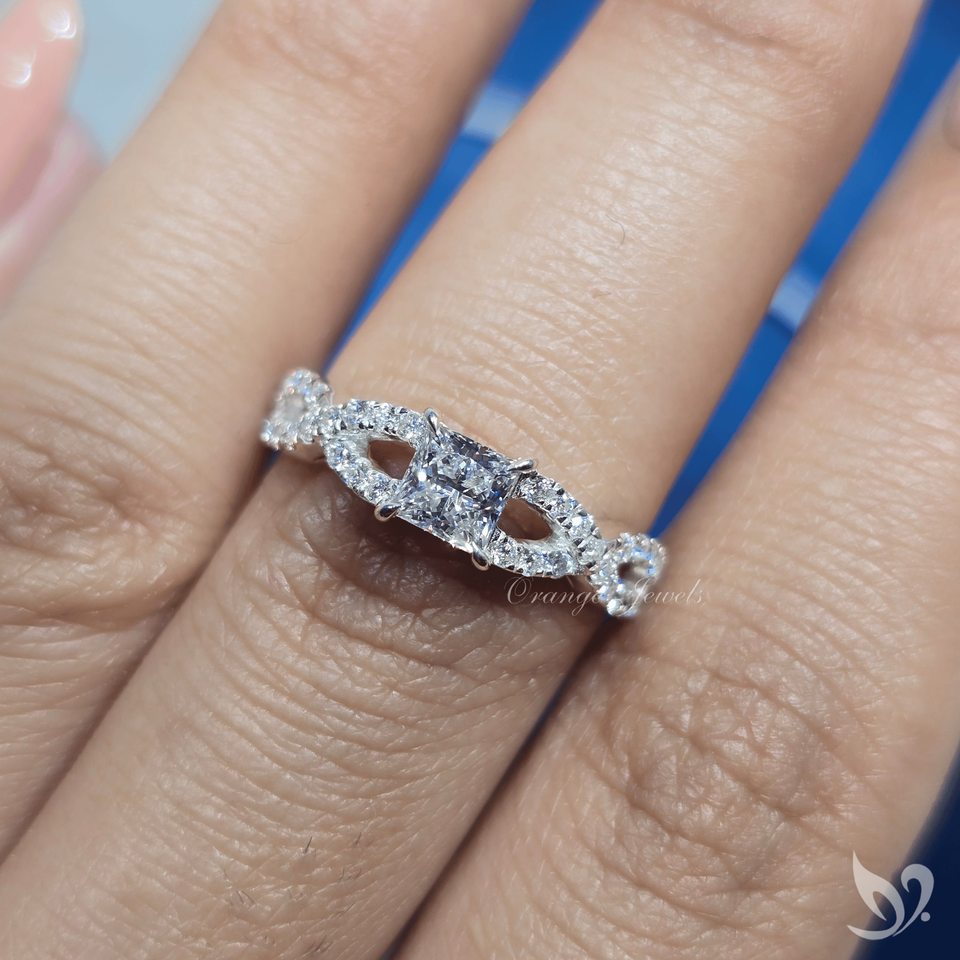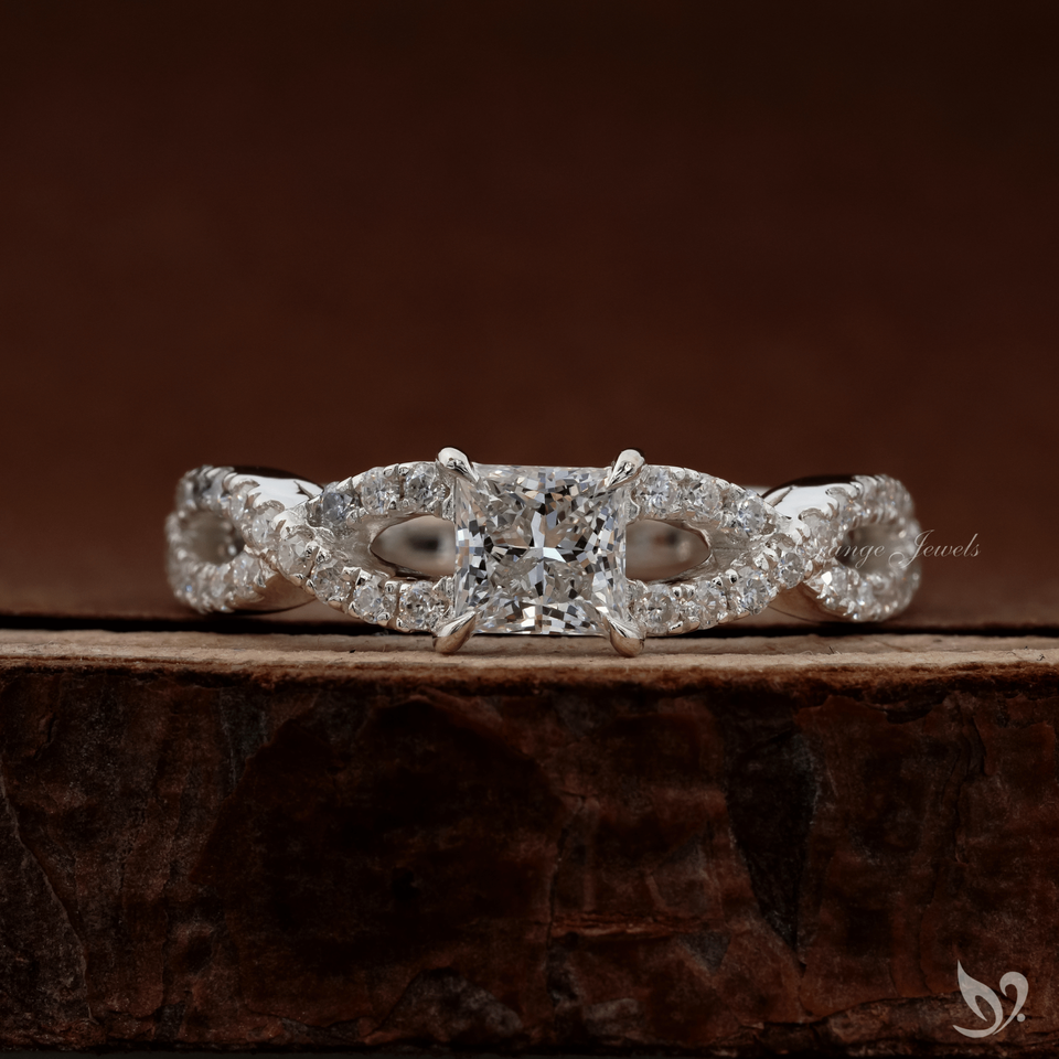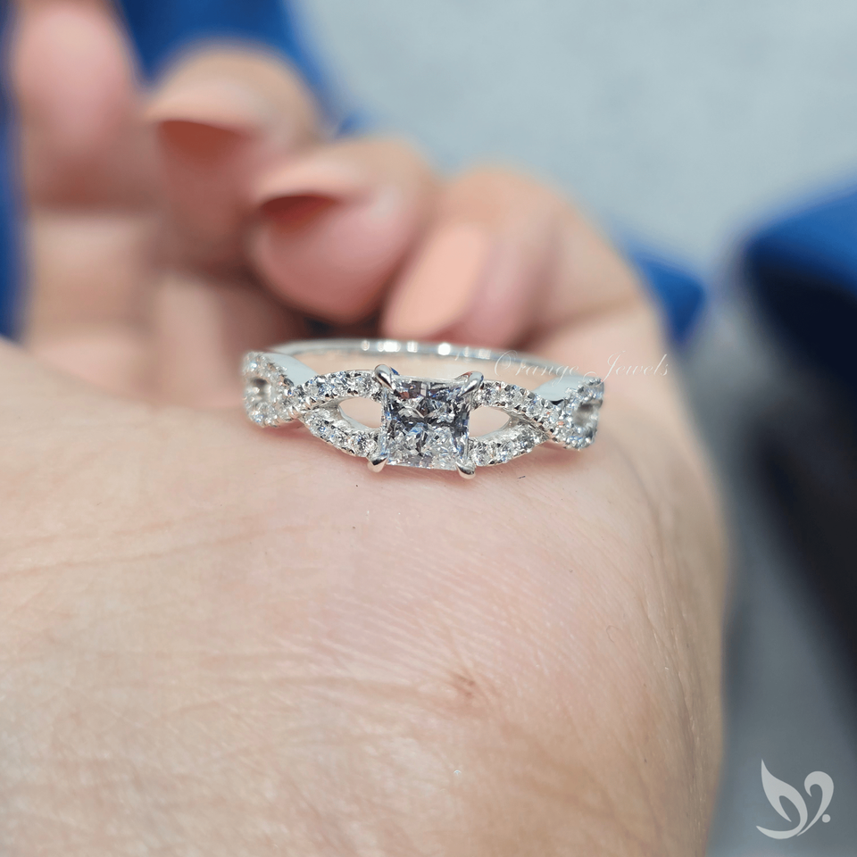 แหวนเพชรทรงปรินเซสคัท 0.5 กะรัต ดีไซน์เกลียวประดับเพชรแบบพาเว่ ทองคำขาว 10K รับรองโดย IGI สำหรับงานหมั้นและงานแต่งงาน