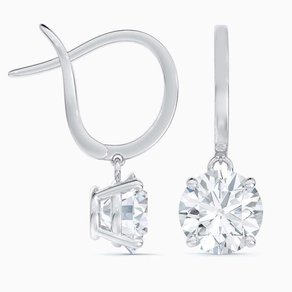 ต่างหูเพชรเลี้ยงในห้องปฏิบัติการ 0.60 กะรัต รับรองโดย IGI แบบห่วงห้อย ทอง 10 กะรัต ชุบโรเดียม ดีไซน์คลาสสิกแบบโซลิแทร์ สำหรับผู้หญิง