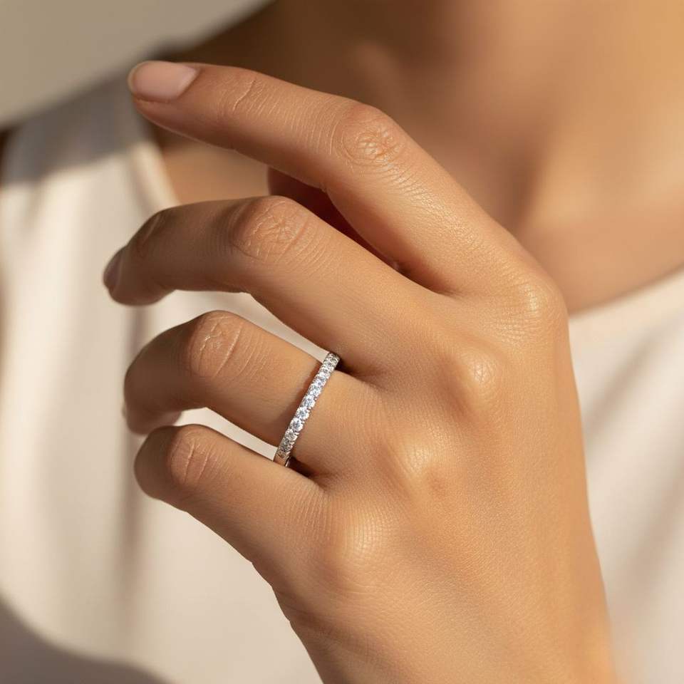แหวนนิรันดร์ทรงกลม 0.60 กะรัต ฝังเพชรแบบไมโครพรองเซ็ต