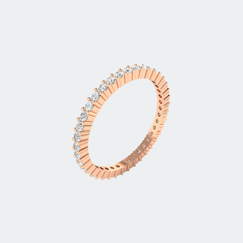แหวนเพชรทรงกลม 0.60 กะรัต แบบ Eternity ตัวเรือนทองคำ ฝังเพชรแบบ Micro Prong Set ดีไซน์เรียบง่าย สำหรับผู้หญิง สามารถสวมซ้อนกันได้ สี D