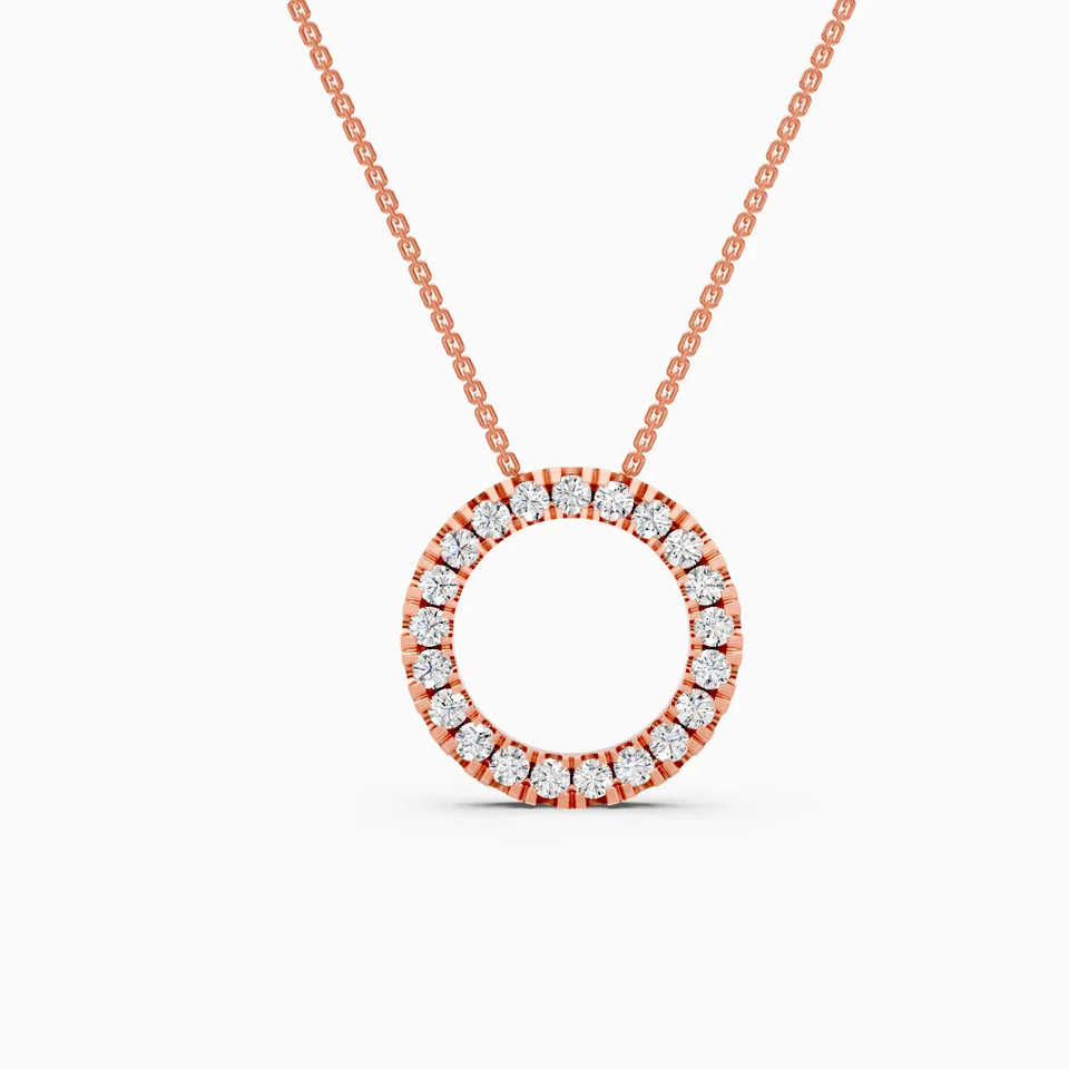 สร้อยคอเพชรทรงวงกลมเปิดหรูหรา น้ำหนัก 0.62 กะรัต เพชรเพาะเลี้ยงในห้องปฏิบัติการ ทำจากทอง 9K สีเหลือง ขาว และโรสโกลด์