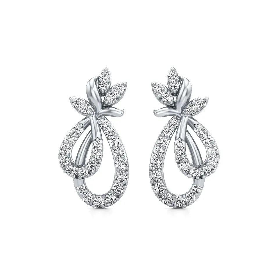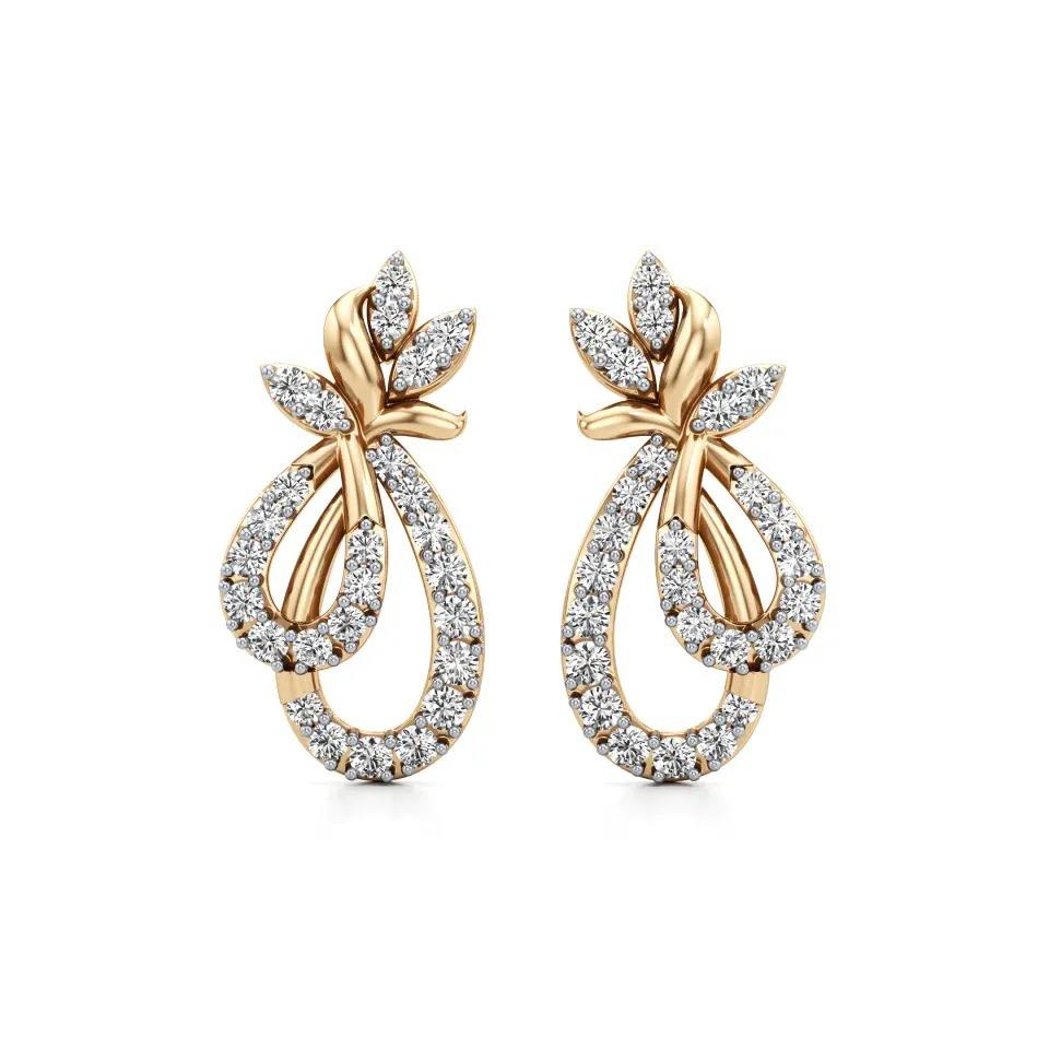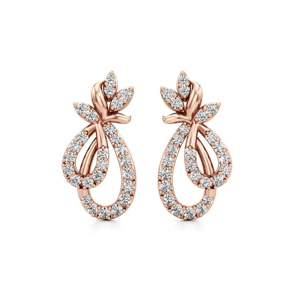 ต่างหูเพชรทรงหยดน้ำลายดอกไม้ น้ำหนัก 0.644 กะรัต ทรงกลม ประดับเพชรแบบฝัง 9K ไวท์โรสเยลโลว์โกลด์