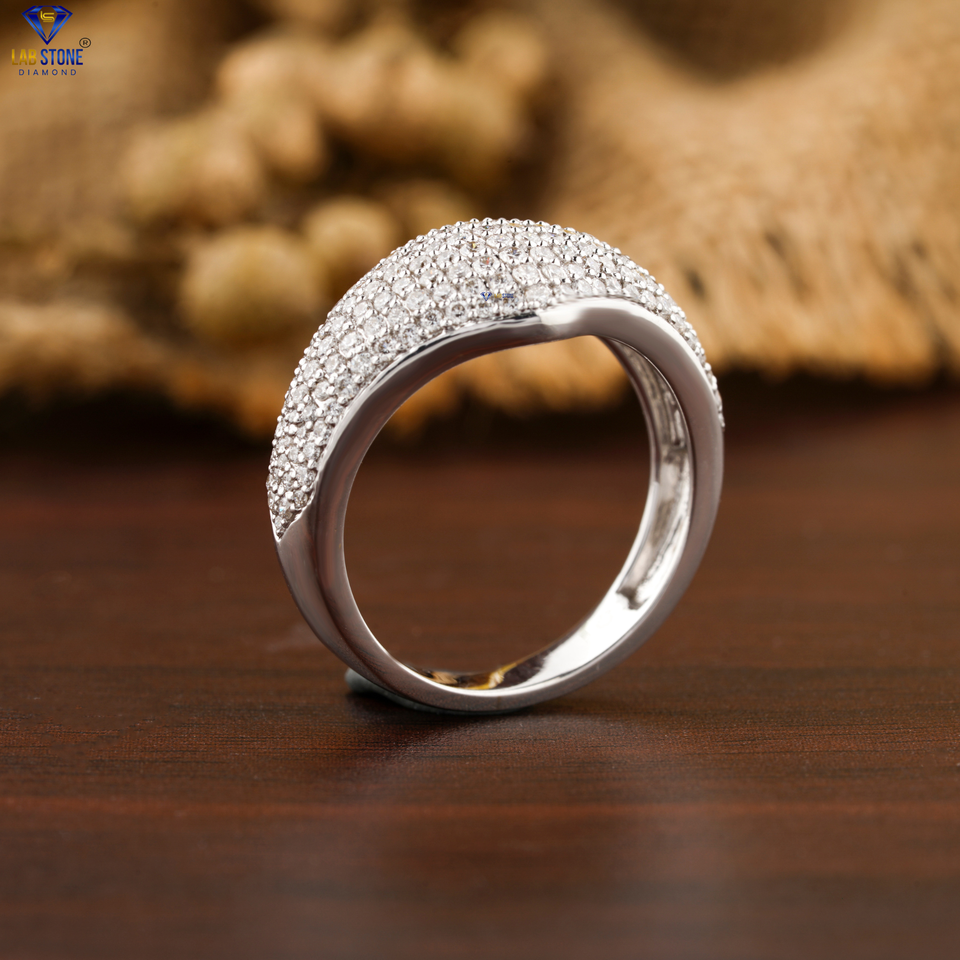 แหวนเพชรทรงกลม0.66 TDW สุกใส18K การตั้งค่ากระจุกทองสีขาว/แถบก้านโดม cvd/hpht หินเพชรในห้องทดลอง