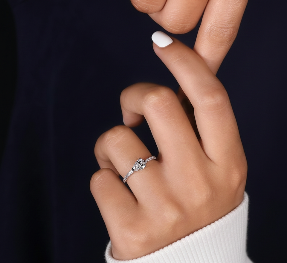 แหวนหมั้นเพชรแล็บทรงลูกแพร์