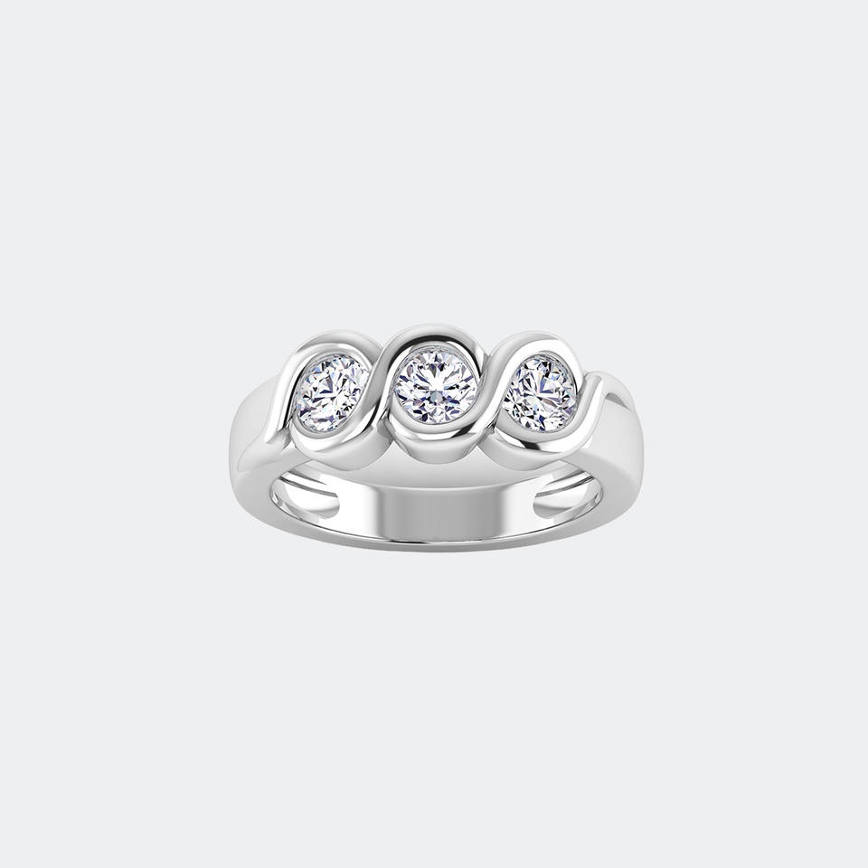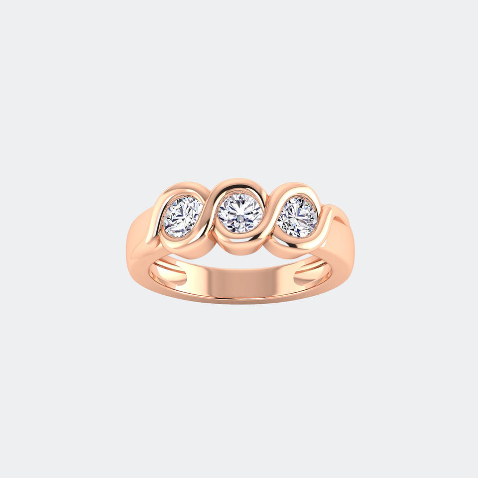 แหวนเพชรทรงกลมสามเม็ด 0.70 กะรัต ฝังแบบเบเซล