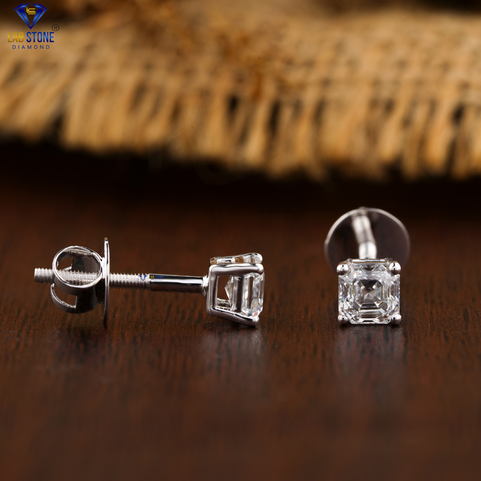 0.72 TDW Asscher ตัดต่างหูเพชร | ทองคำขาว18K | เพชร Labgrown | เพชร Hpht/Cvd | เครื่องประดับ