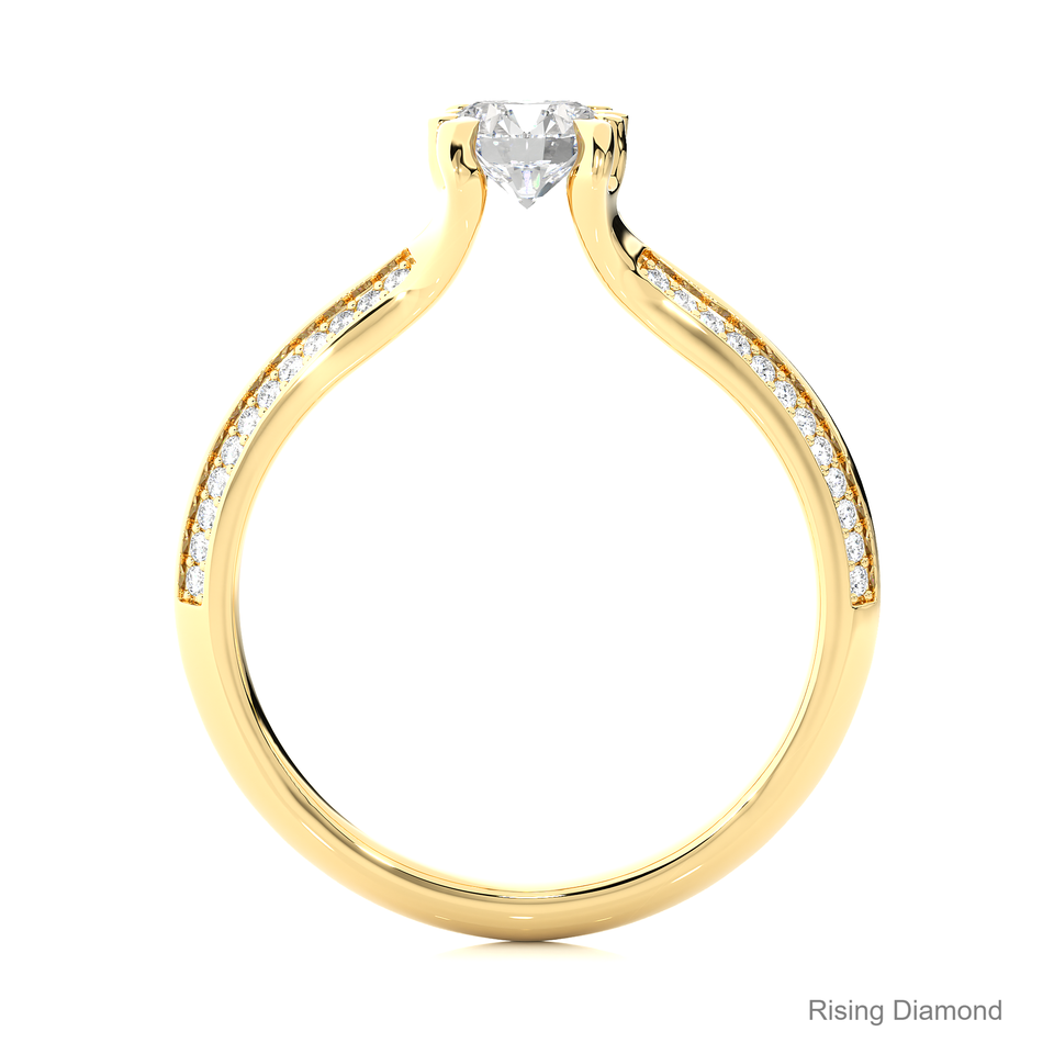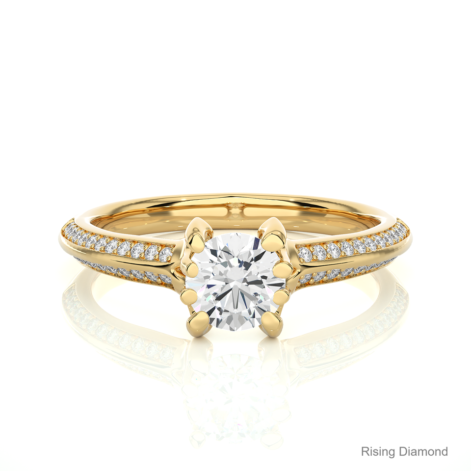 แหวนเพชร CVD สำหรับผู้หญิง0.74 CT ทรงกลมสำหรับผู้หญิงแหวนหมั้นทำจากเพชรสีเหลืองทอง