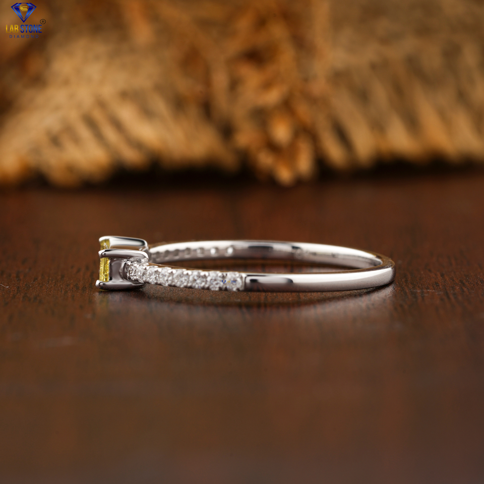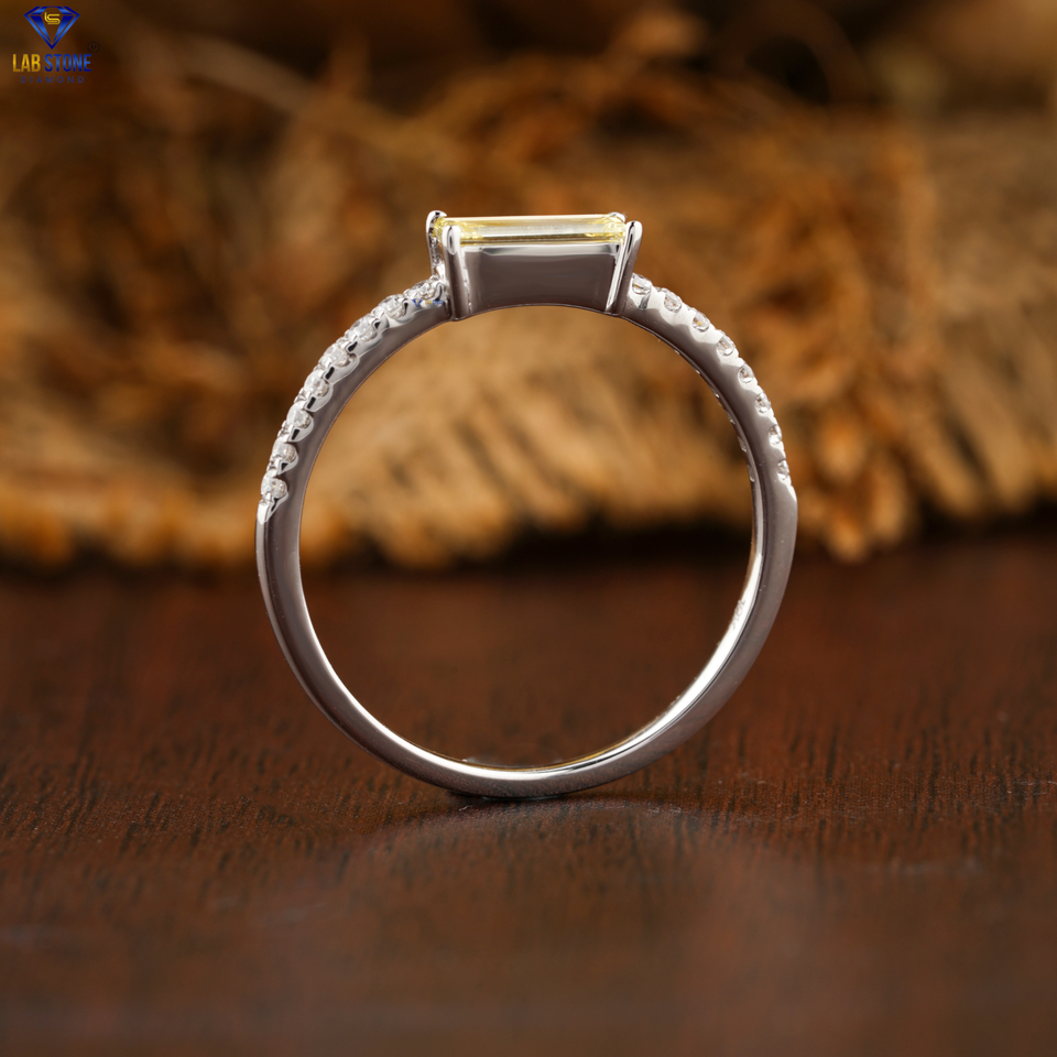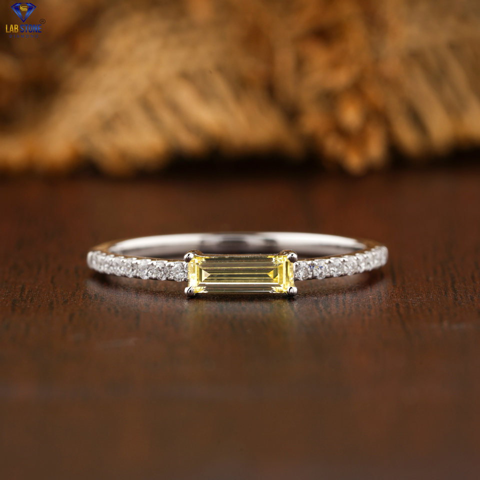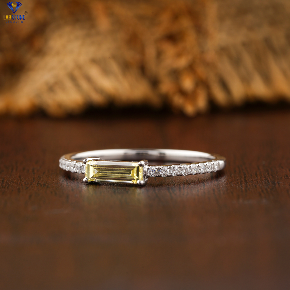 0.748 TDW Baguette & แหวนเพชรทรงกลมตัดสดใส18K ฝังทองสีขาว cvd/hpht หินห้องแล็บประดับเพชร